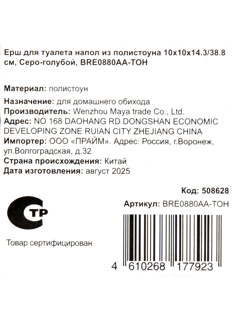 Вы можете приобрести «Ерш для туалета Серо-голубой, напольный, 10x10x14.3/38.8 см, полистоун, BRE0880AA-TOH» и другие товары в нашем интернет-магазине в Борисоглебске по низким ценам и с бесплатным самовывозом.