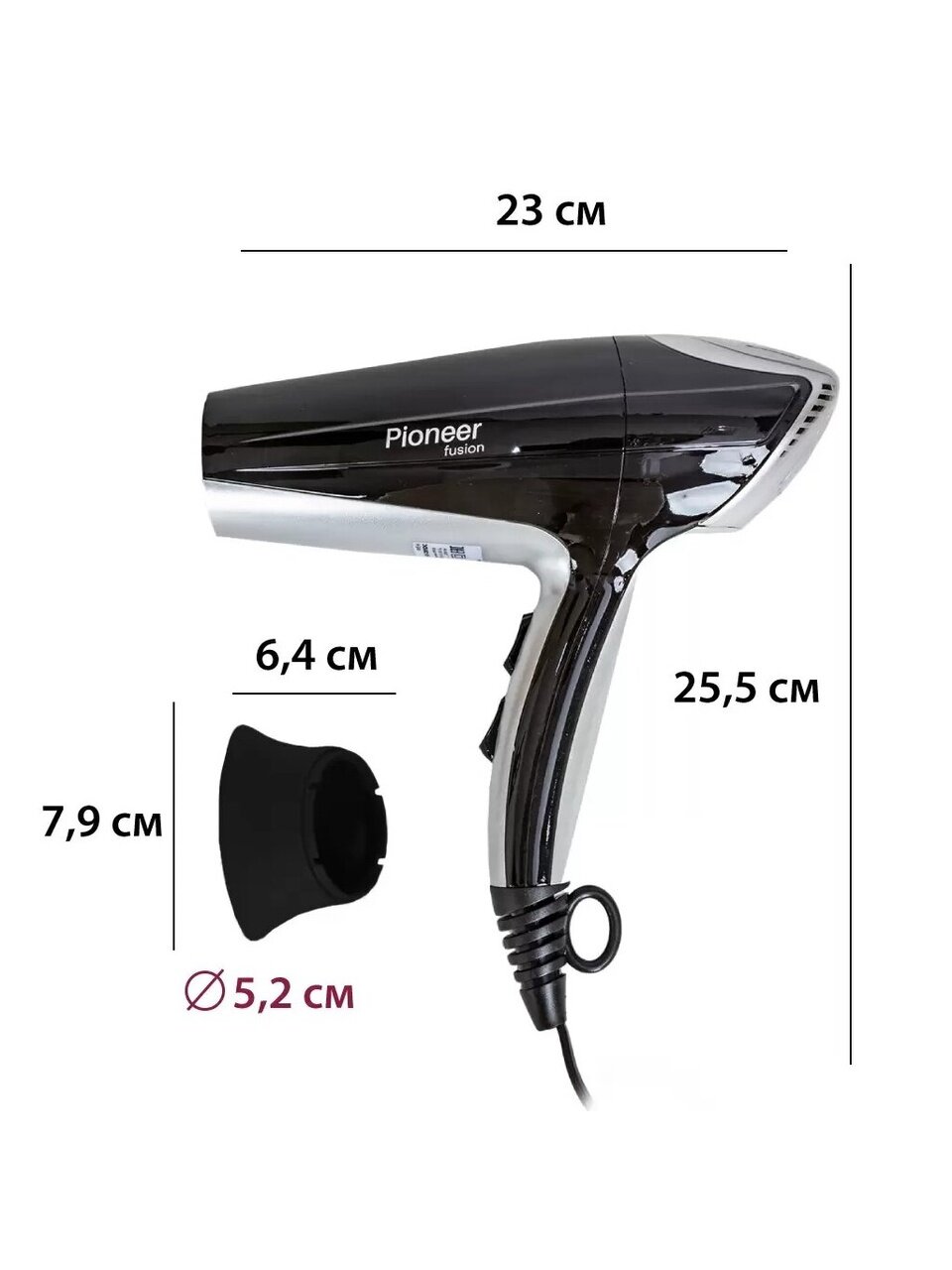 - Комплектация: фен, насадка концентратор, гарантийный талон, инструкция на русском языке;