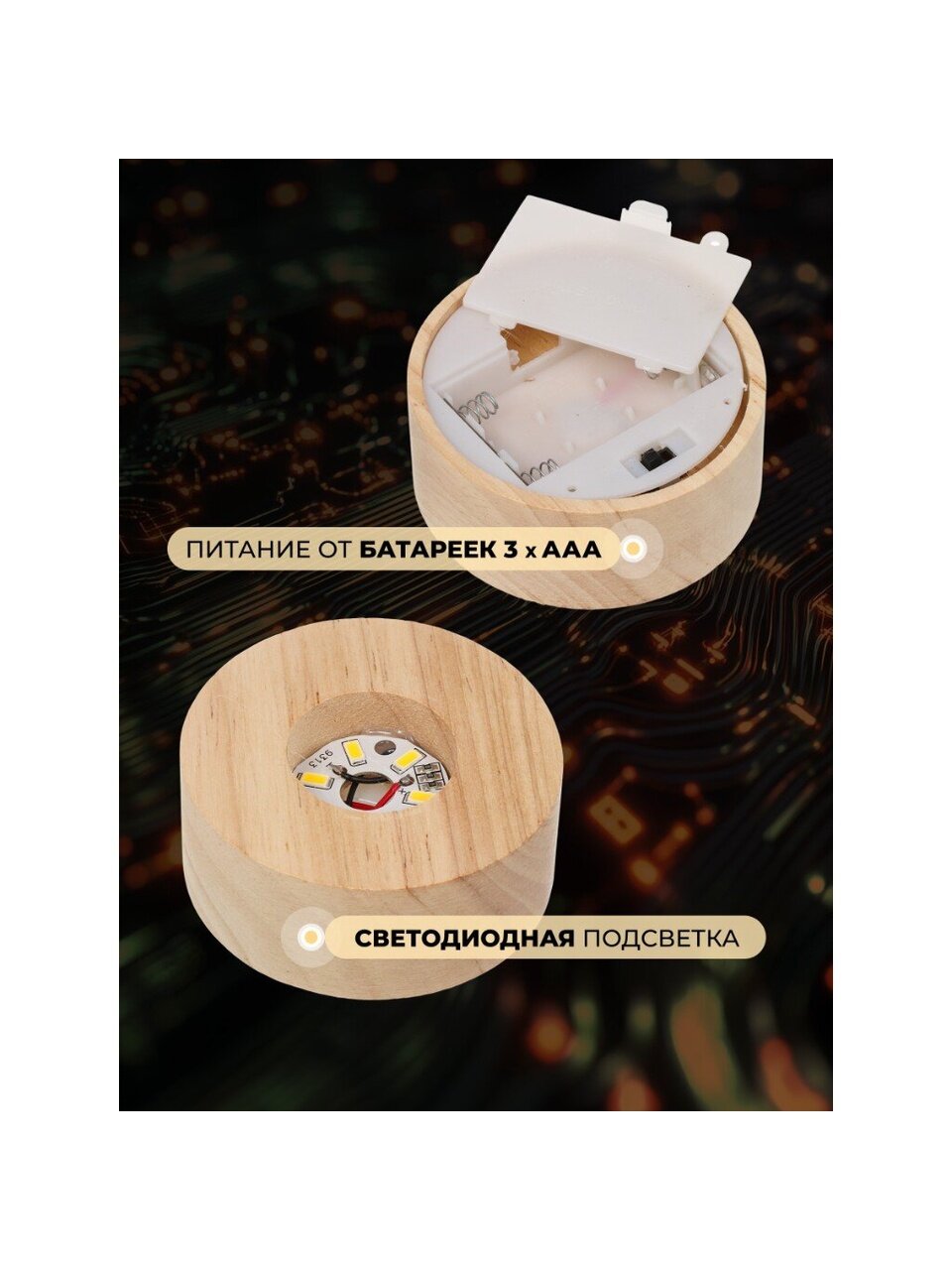 - Деревянная подставка не только стильно дополняет фигурку, но и обеспечивает ее устойчивость на любой поверхности. Материал подставки также подчеркивает натуральность и экологичность продукта, что делает его еще более привлекательным для любителей натуральных материалов.