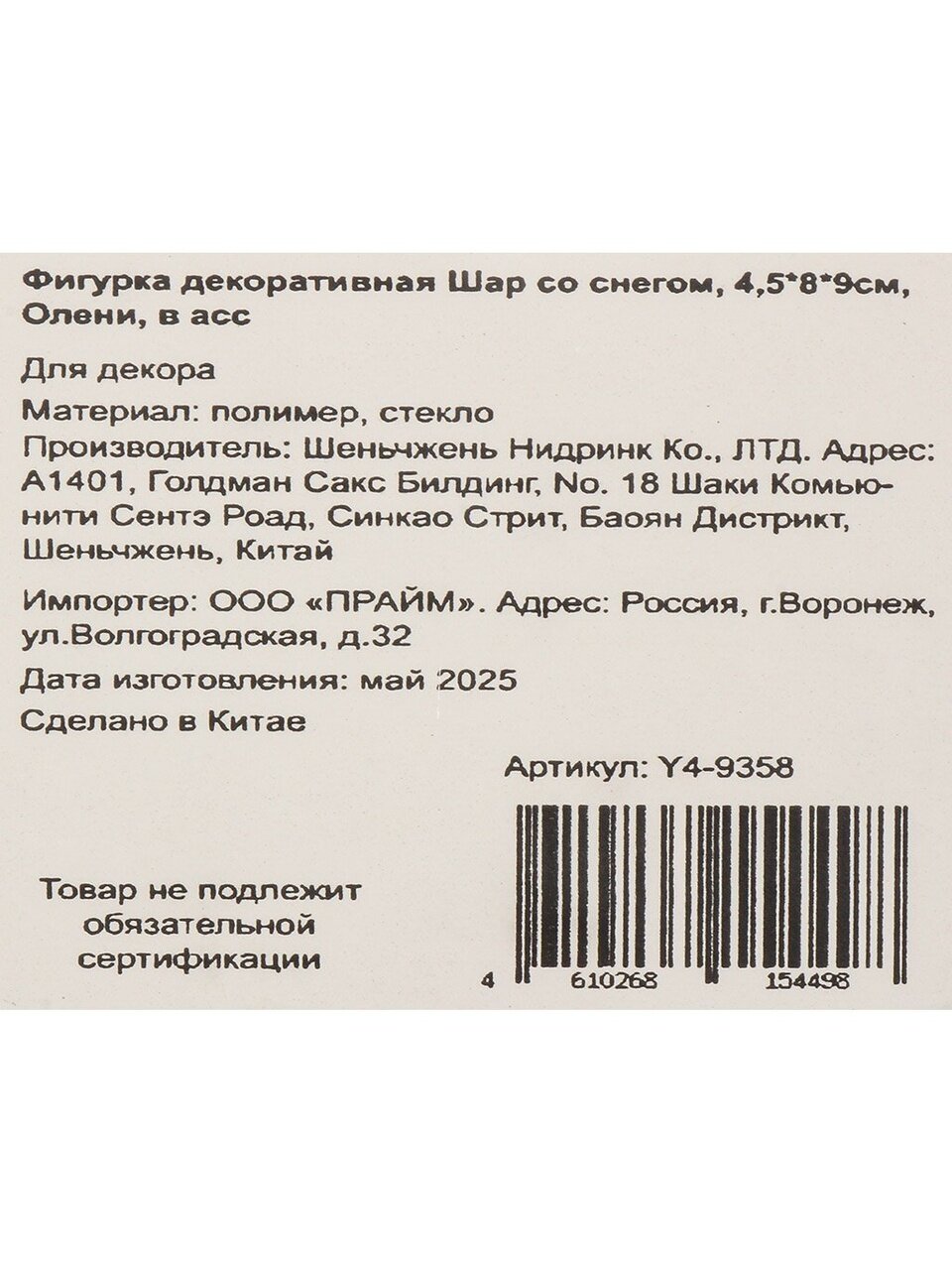 Вы можете приобрести «Фигурка декоративная Шар со снегом Олени, 8х4.5х9 см, в ассортименте, Y4-9358» и другие товары в нашем интернет-магазине в Иваново по низким ценам и с бесплатным самовывозом.