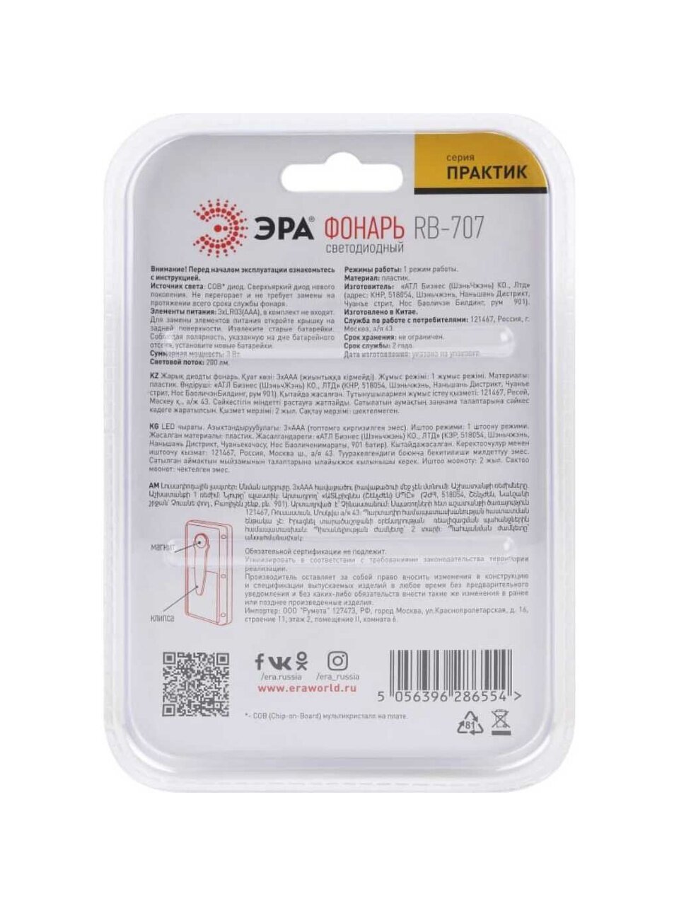 Вы можете приобрести «Фонарь Эра, RB-707, пластик, на батарейках, магнит, клипса - держатель, Б0052314» и другие товары в нашем интернет-магазине в Россоши по низким ценам и с бесплатным самовывозом.