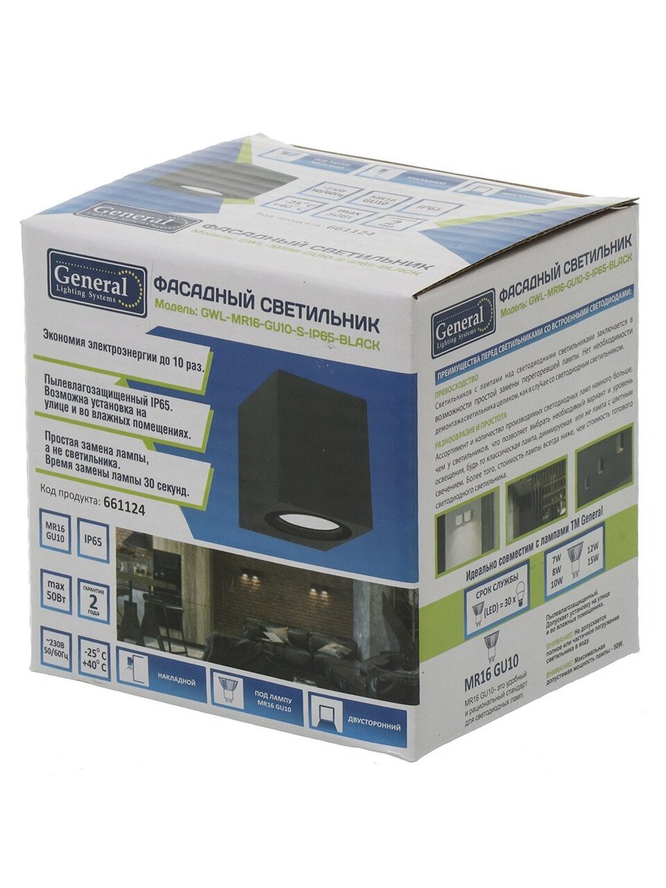 Вы можете приобрести «Светильник фасадный General Lighting Systems, GWL-MR16-GU10-S-IP65, 25 Вт, GU10, на 1 лампочку, IP65, 8х8 см, 1 лампа, IP65, квадратный, черный, 661124» и другие товары в нашем интернет-магазине в Иваново по низким ценам и с бесплатным самовывозом.
