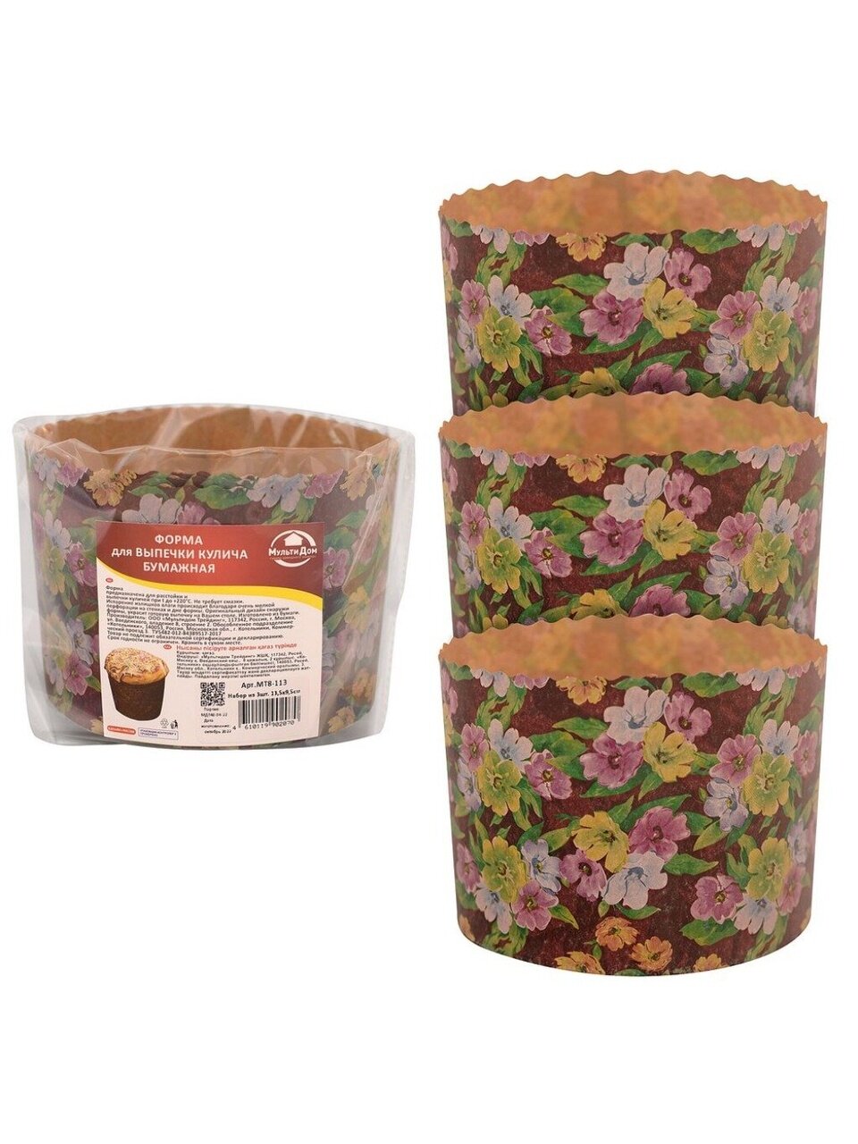 Форма для выпечки куличей Мультидом: набор из 3 жаропрочных бумажных форм 13.5х9.5 см для идеального пасхального кулича дома и на даче — удобно, гигиенично, экономно.