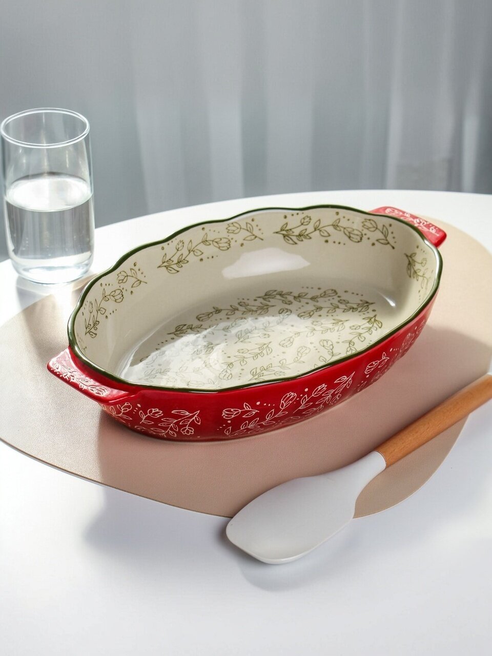 Форма для запекания из керамики «Красные веточки» — это удачный выбор для тех, кто ищет надежную и эстетичную посуду для духовки. Керамика обеспечивает равномерное распределение тепла, благодаря чему ваши блюда получаются особенно сочными и ароматными. Многие спрашивают: «Как выбрать форму для запекания мяса или пирога?» — для универсальных задач идеально подходит именно эта овальная модель с размерами 22х35 см. Она вместит курицу, порционный мясной рулет, большой пирог или порцию кексов для всей семьи.