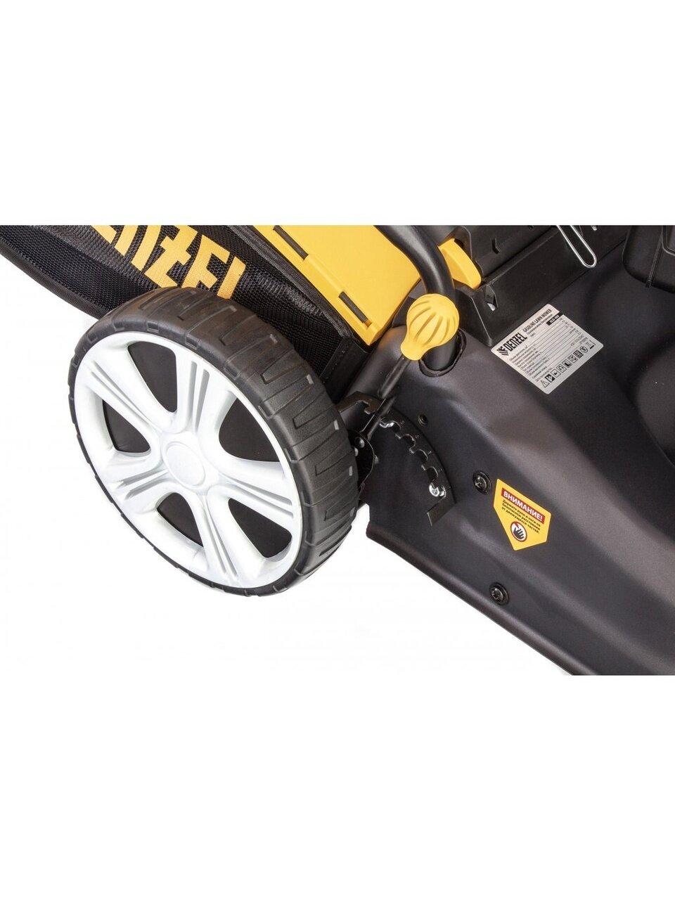 - Высококачественный редуктор привода колес General Transmission позволяет с легкостью направлять косилку в нужную сторону, не толкая ее.