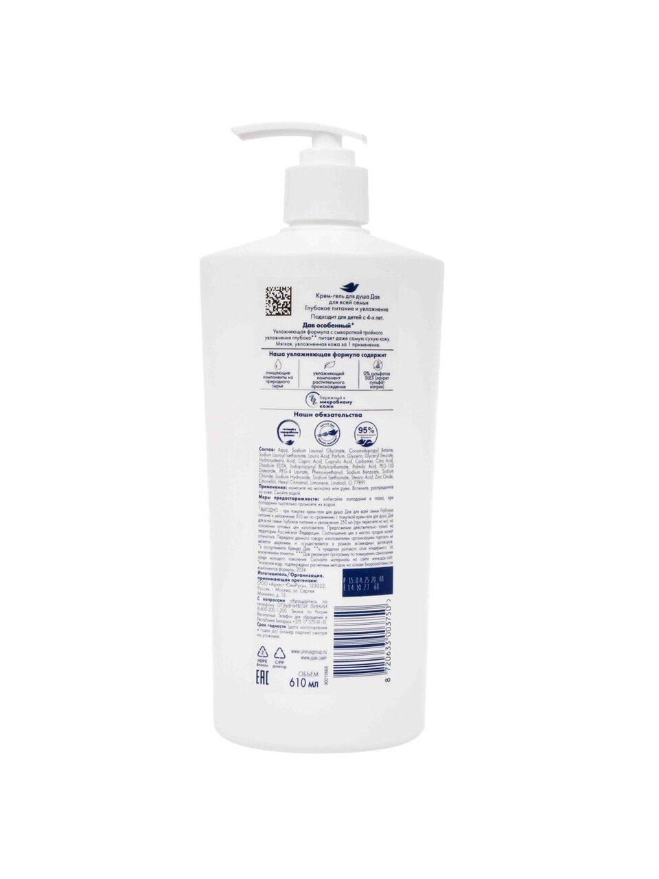Крем-гель для душа Dove "Глубокое питание и увлажнение" объемом 610 мл — идеальный выбор для тех, кто ищет эффективное средство для ежедневного ухода за кожей. Приятная текстура крем-геля мягко очищает, не пересушивая, а также способствует глубокому питанию и длительному увлажнению. Благодаря продуманной формуле, продукт подходит для регулярного использования и помогает поддерживать ощущение свежести и комфорта после каждого применения. Крупный объем 610 мл делает покупку особенно выгодной для семейного использования или для тех, кто ценит экономию и заботится о регулярном уходе.