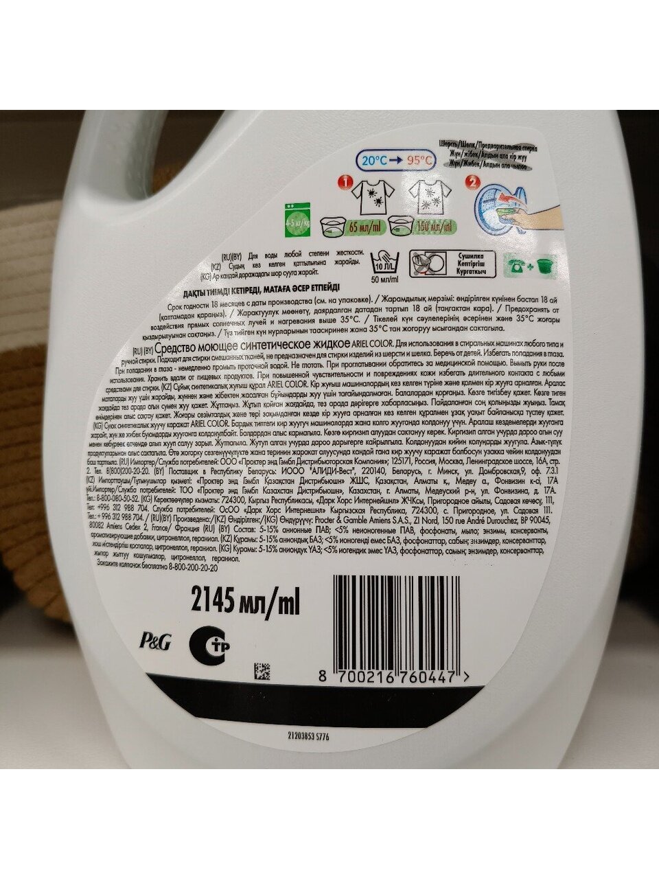 Представляем гель для стирки Ariel, 2.145 л, специально разработанный для цветного белья. Этот гель станет надежным помощником в уходе за одеждой, сохраняя ее яркость и свежесть. Ariel Color обеспечивает бережное очищение и глубокую чистоту, что делает его незаменимым в каждом доме.