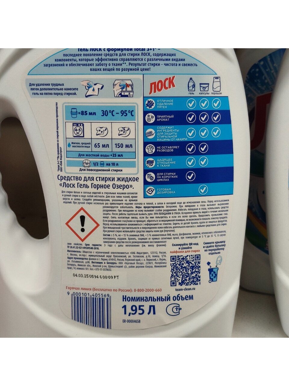 Жидкие средства для стирки ЛоскГорное озеро с формулой Total 3+1 - последнее поколение средств для стирки Лоск, содержащих компоненты, которые эффективно справляются с различными видами загрязнений и обеспечивают заботу о ткани. Результат стирки - чистота и свежесть ваших вещей по разумной цене!