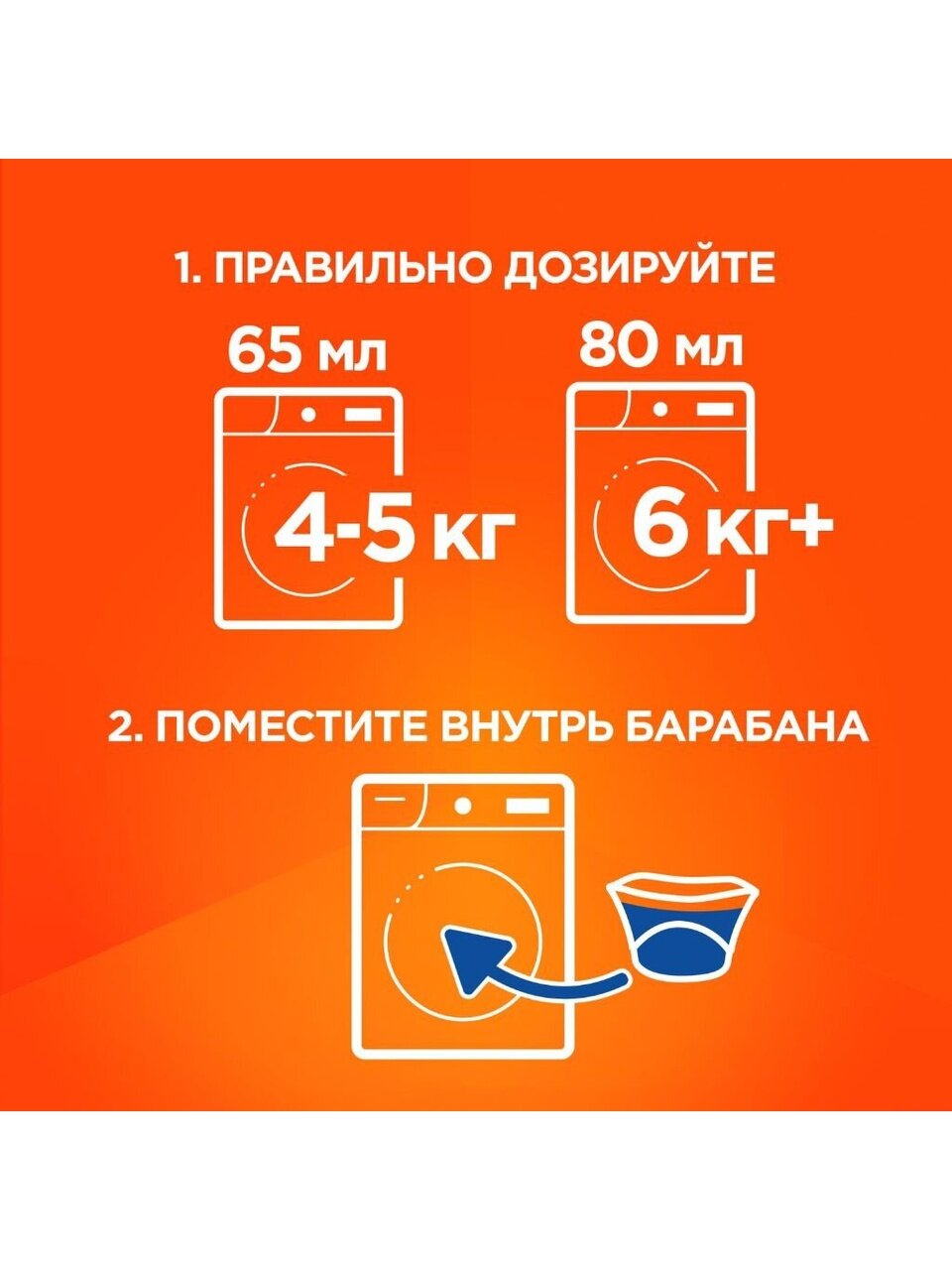 Средство подходит для стирки как цветного, так и белого белья, прекрасно растворяется в воде и полностью выполаскивается. Благодаря большому объему средство становится крайне экономичным, ведь одной упаковки жидкого порошка хватит на очень долгое время.