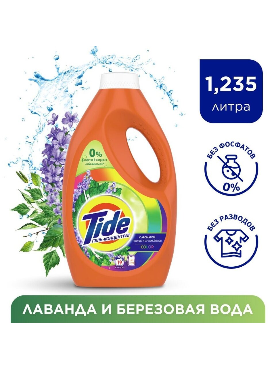 Гель Tide Color «Лаванда и березовая вода» сочетает в себе безупречное очищение от Tide и аромат, навеянный природой. Он эффективно справляется с пятнами, бережно воздействуя на ткань и сохраняя яркость цветов. Tide «Лаванда и березовая вода» также предлагается в форме стирального порошка. Гель с ароматом, навеянным природой. Гигиеническое очищение от Tide сохраняет яркость цветов. С биоэнзимами. Не содержит фосфатов и хлорного отбеливателя. С ингредиентами растительного происхождения.