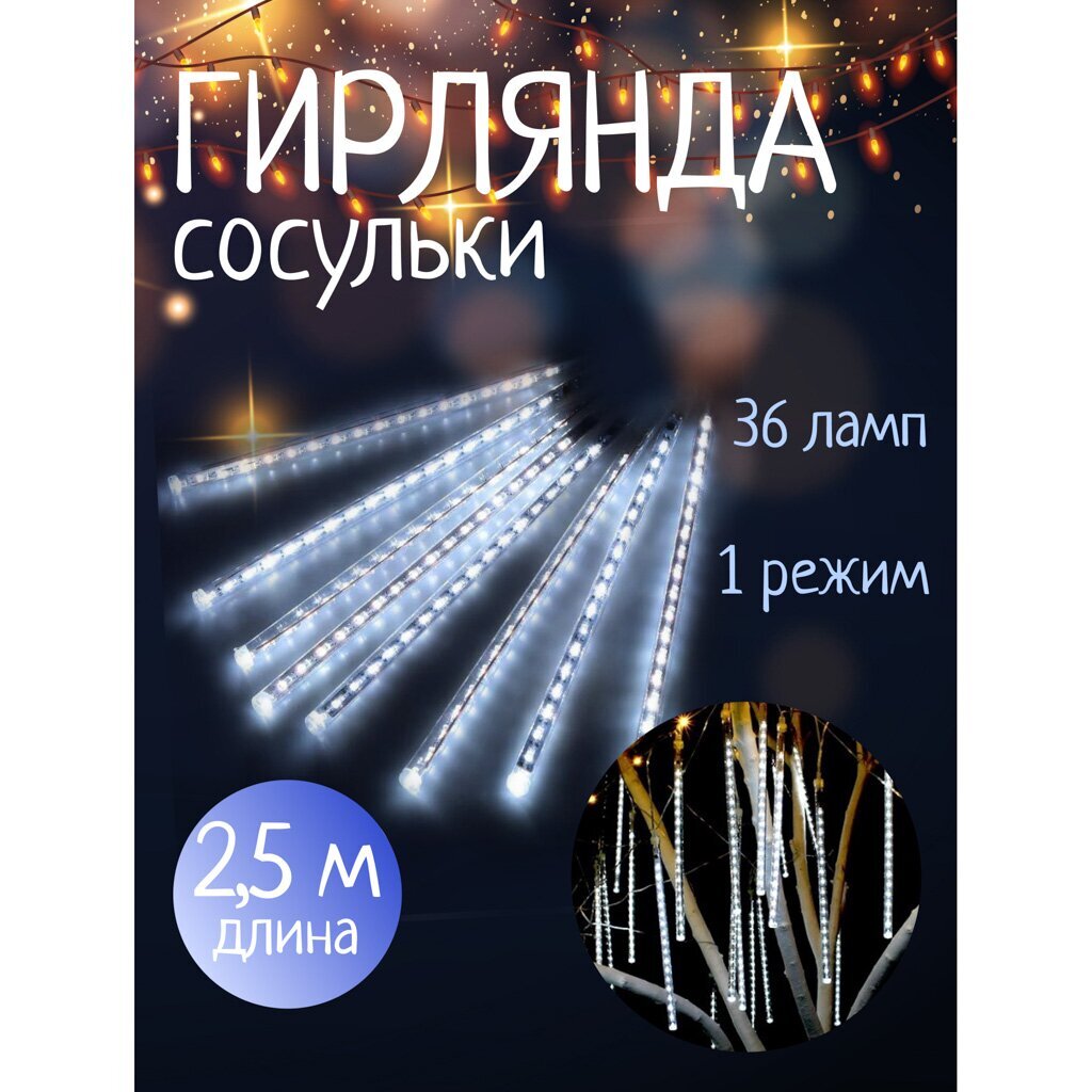Вы можете приобрести «Гирлянда 36 ламп, 2.5 м, 1 режим, Сосульки, свет белый, прозрачная, на улице/в помещении, сетевая, LED, SYCLA-18046» и другие товары в нашем интернет-магазине в Шахтах по низким ценам и с бесплатным самовывозом.