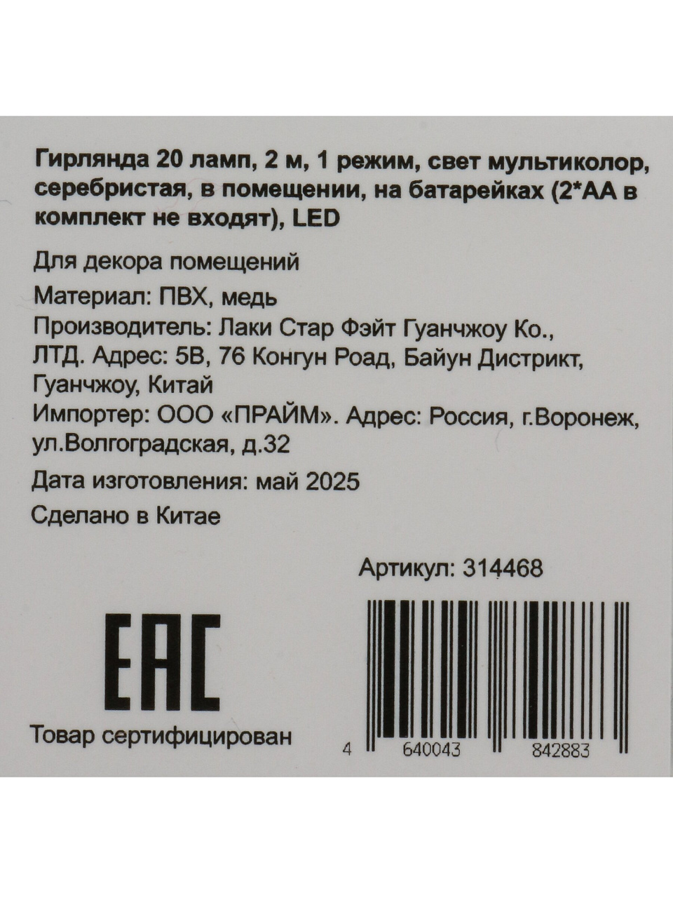 Вы можете приобрести «Гирлянда 20 ламп, 2 м, 1 режим, свет мультиколор, серебристая, в помещении, на батарейках, LED, SYDB-041902» и другие товары в нашем интернет-магазине в Борисоглебске по низким ценам и с бесплатным самовывозом.