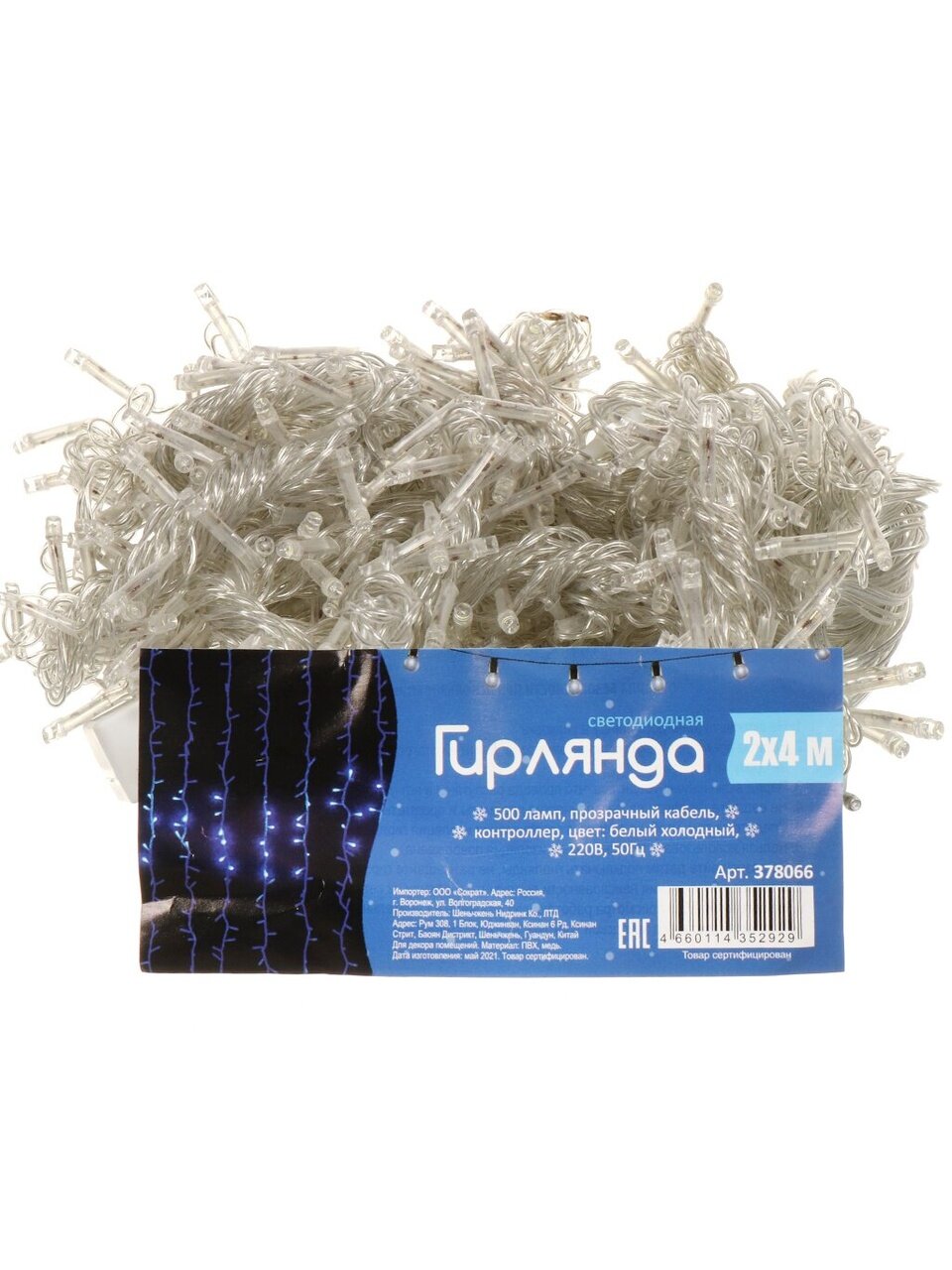 Вы можете приобрести «Гирлянда 500 ламп, 2х4 м, 1 режим, холодный белый свет, прозрачная, в помещении, сетевая» и другие товары в нашем интернет-магазине в Смоленске по низким ценам и с бесплатным самовывозом.