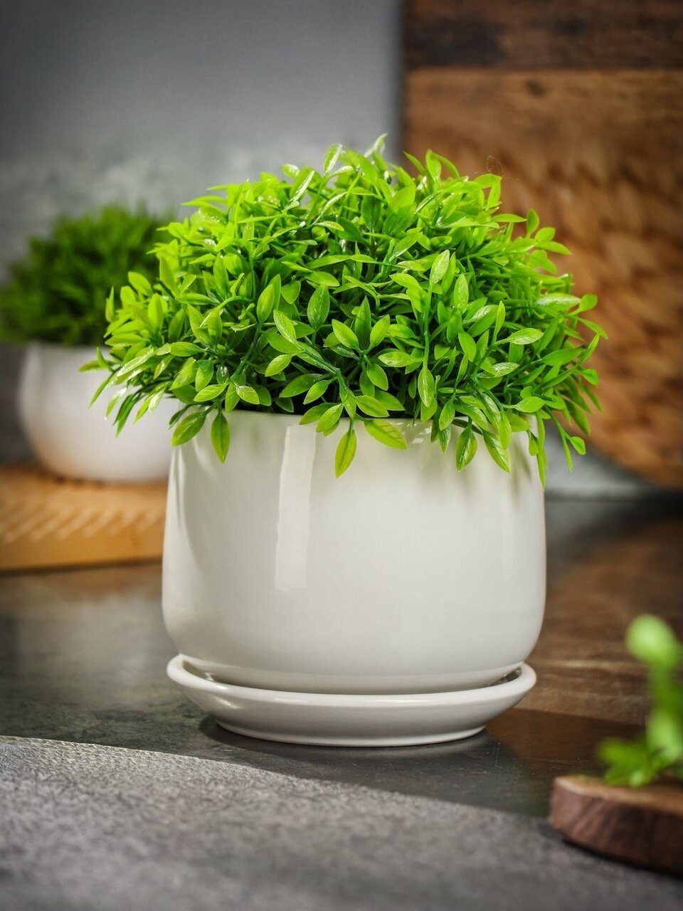 Кашпо помогает защитить поверхность от влаги и грязи, что позволяет поддерживать чистоту и порядок в доме, а также сохраняет поверхности от потенциальных повреждений. Кроме того, кашпо создает уютную атмосферу и придает растению более ухоженный и эстетичный вид.