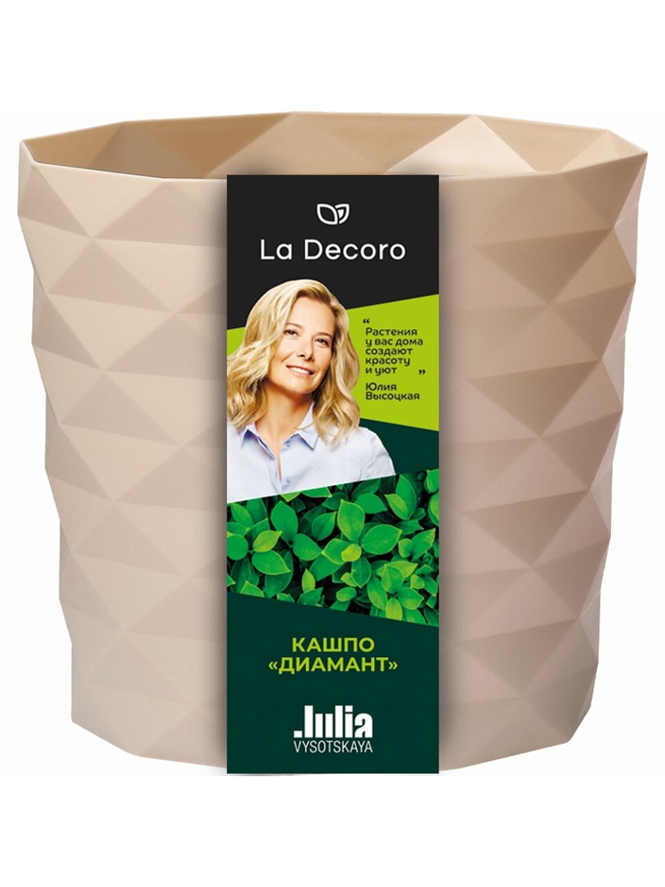 Кашпо пластик, 3 л, 17.7х17.7х16.5 см, универсальное, пудровое, La Decoro, Диамант, КШ-4639