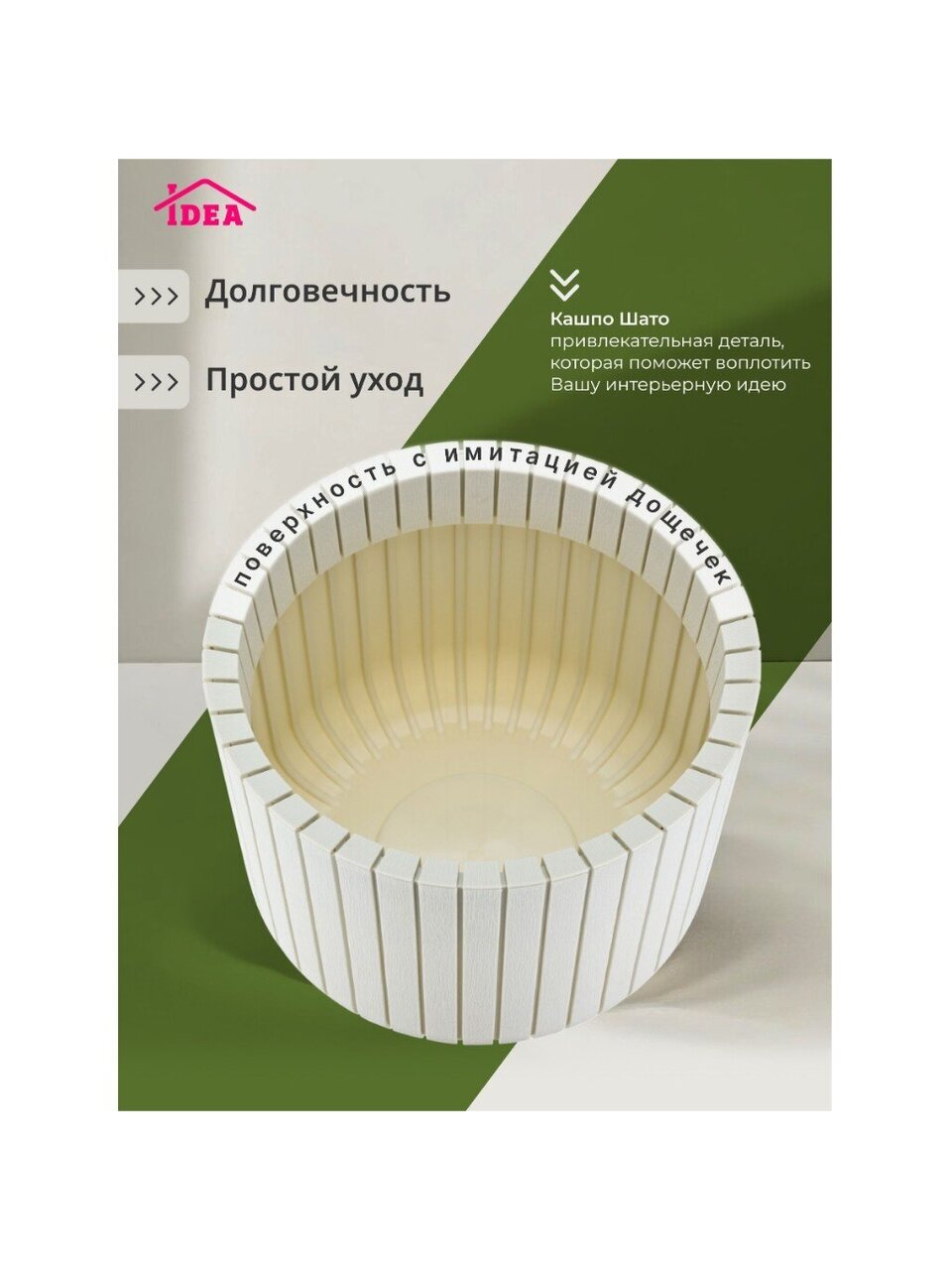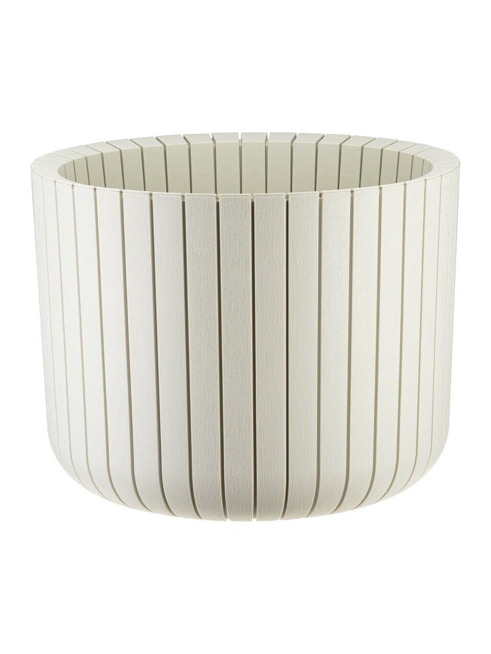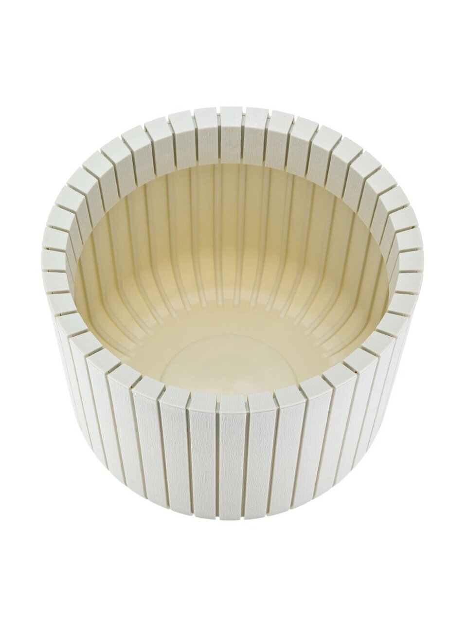Кашпо выглядит аккуратным компактным, не смотря на свою вместительность. Эффект объемных дощечек создается за счет декоративного ободка, при этом объем кашпо не уменьшается. Ободок также выполняет функцию ребра жесткости, что сохраняет прочность конструкции.