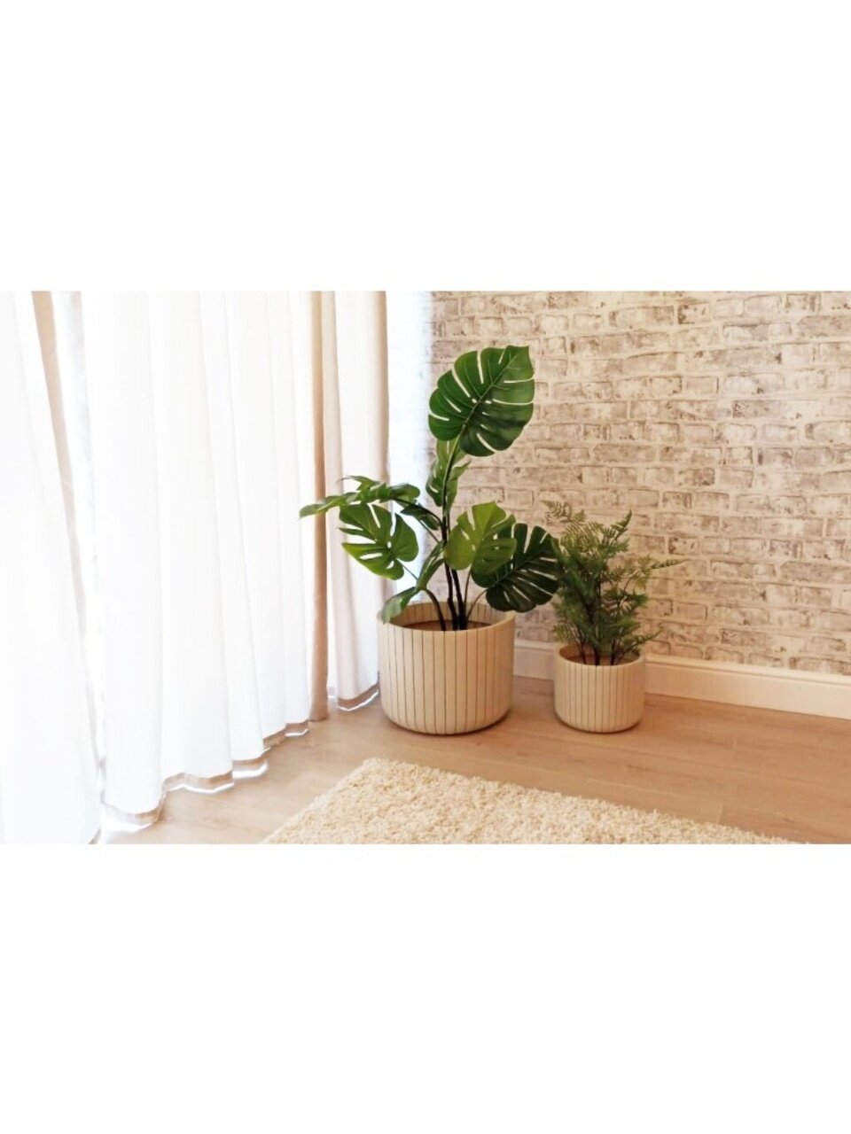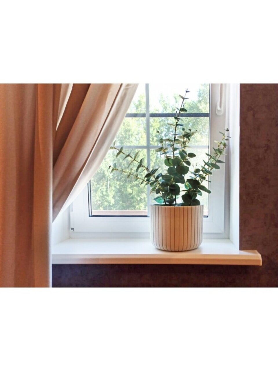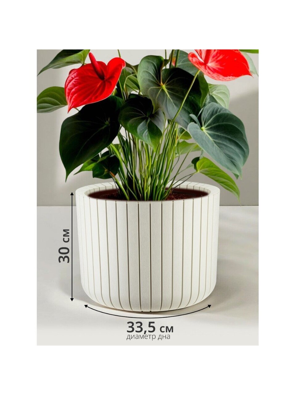 Кашпо выглядит аккуратным компактным, не смотря на свою вместительность. Эффект объемных дощечек создается за счет декоративного ободка, при этом объем кашпо не уменьшается. Ободок также выполняет функцию ребра жесткости, что сохраняет прочность конструкции.