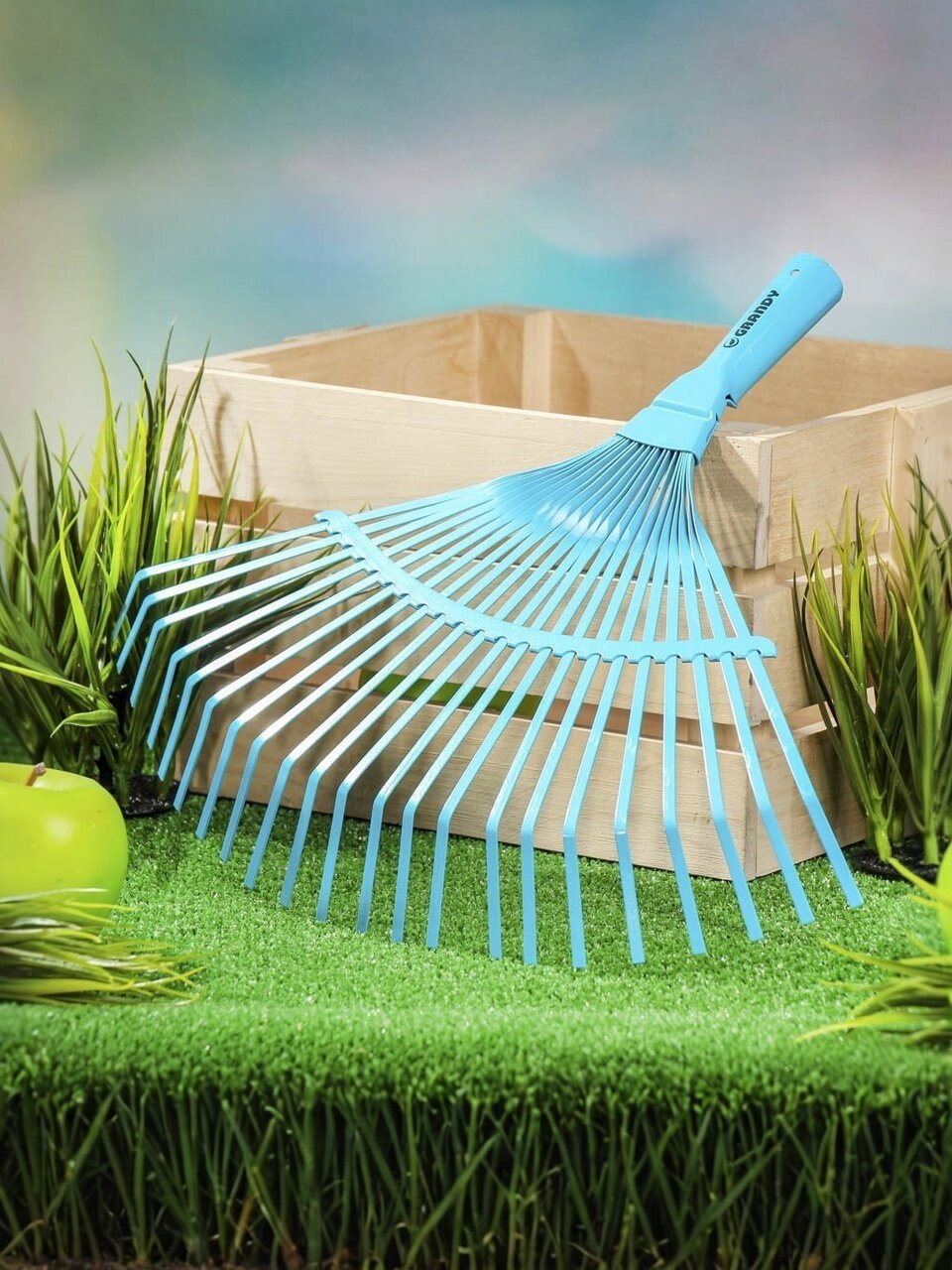 Грабли веерные Grandy 22 зуба: прочный металл, оптимальная ширина 36,5 см — идеальный выбор для быстрой уборки листвы на даче и в саду