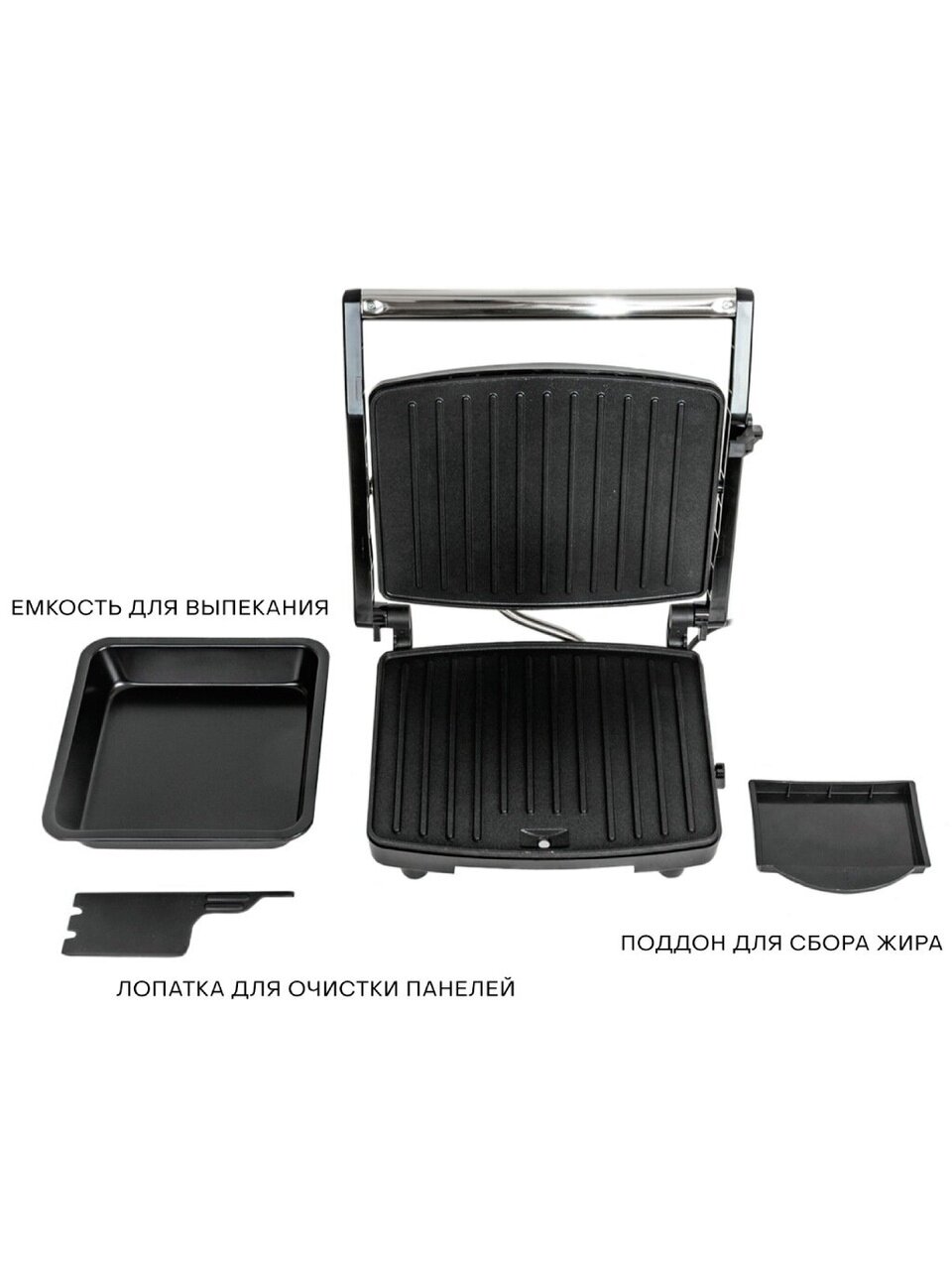 - Прибор оснащается съемным лотком для жира. В устройстве термоизоляционная ручка.