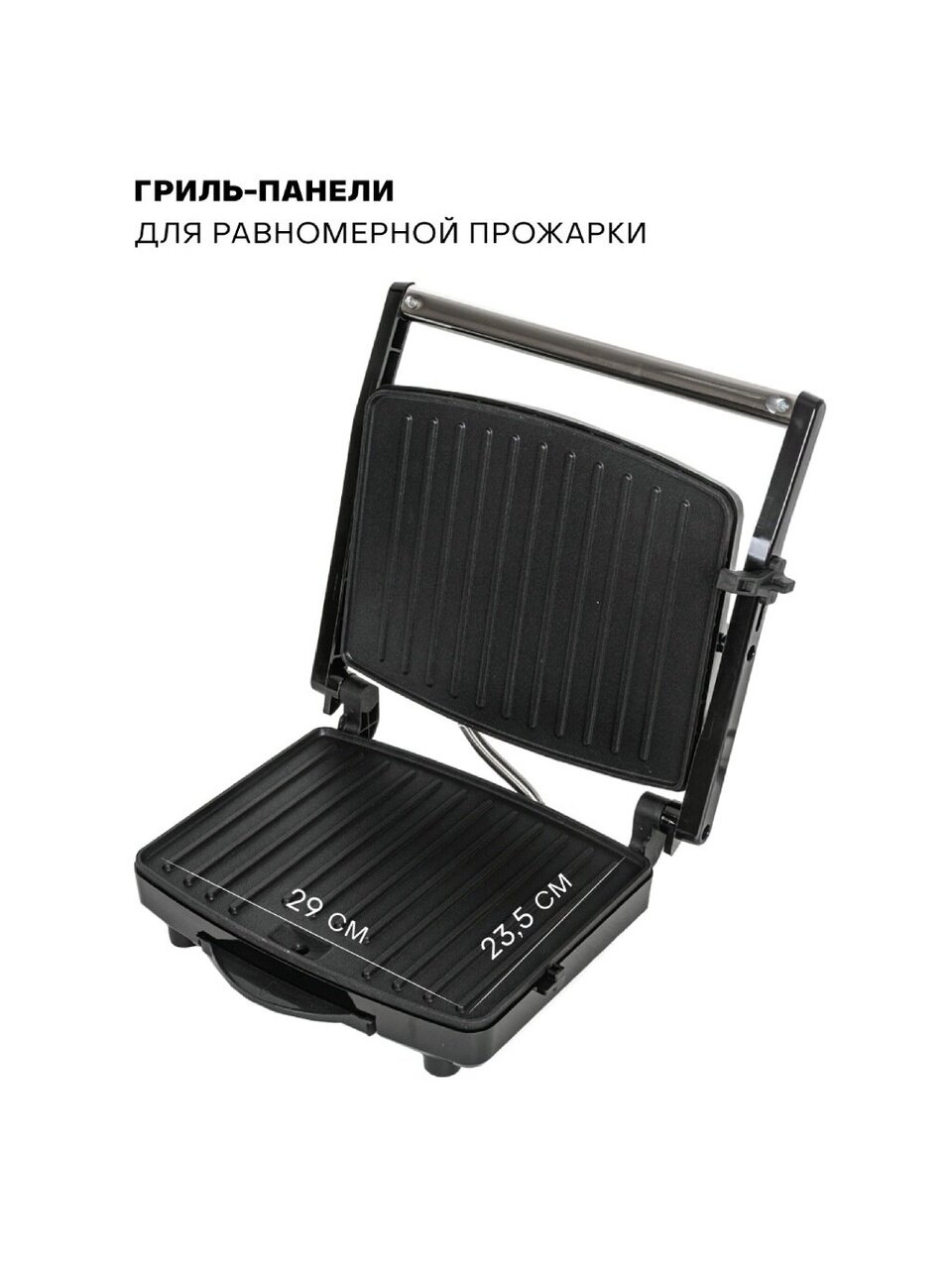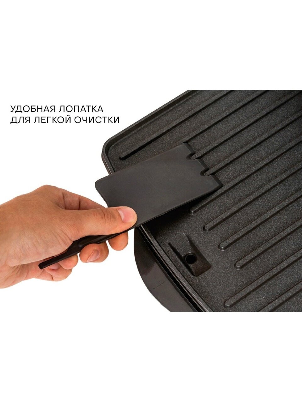 Оборудован двумя пластинами с антипригарным покрытием, которые позволяют готовить здоровую пищу с небольшим содержанием масла и без особой сложности очищаются от загрязнений.