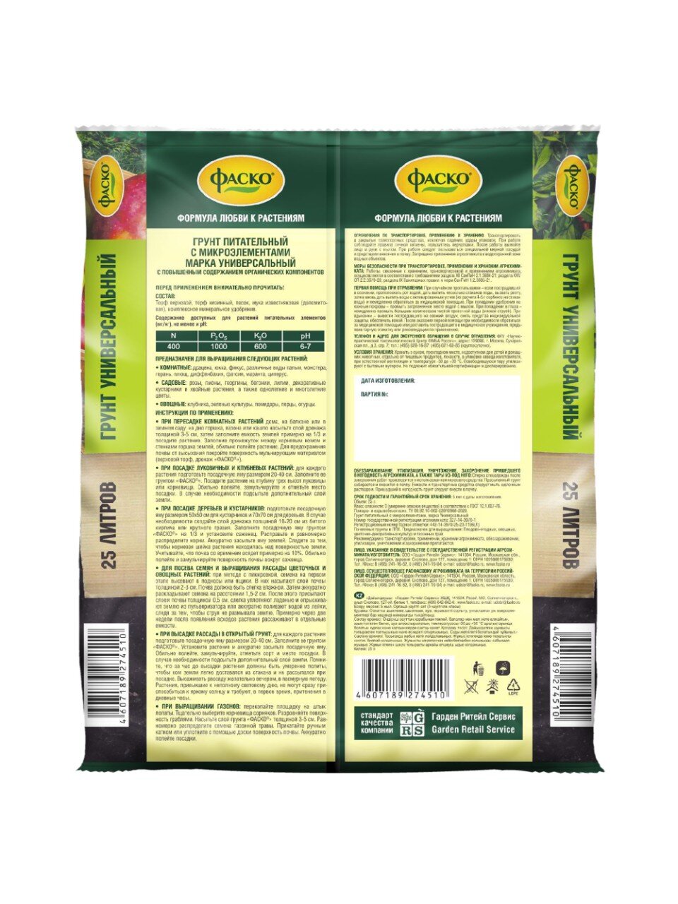 Грунт Фаско Универсальный 25л — оптимальный выбор для рассады, комнатных и садовых растений: повышенная питательность, экономия времени и уверенный результат.