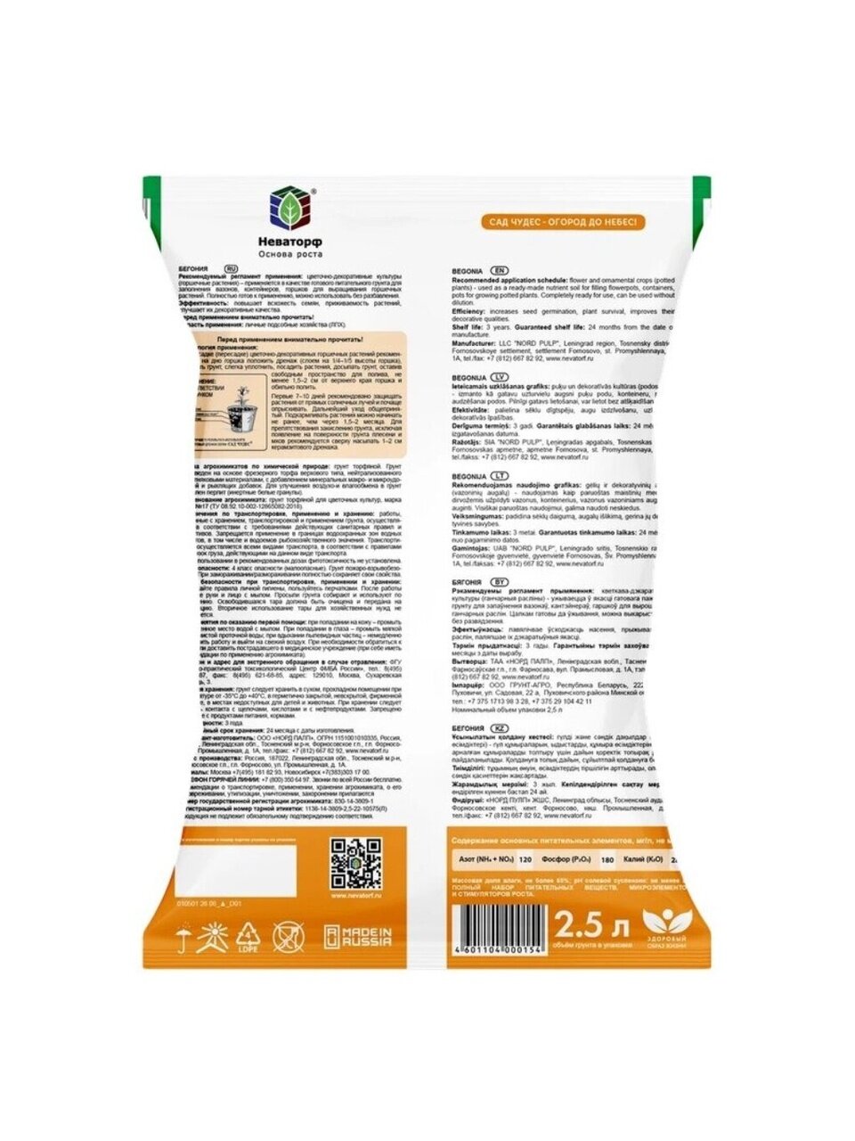Питательный грунт Сад чудес «Бегония» полностью готовый слабокислый, рыхлый.