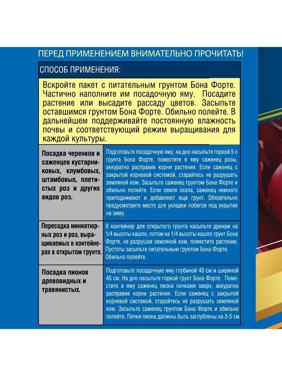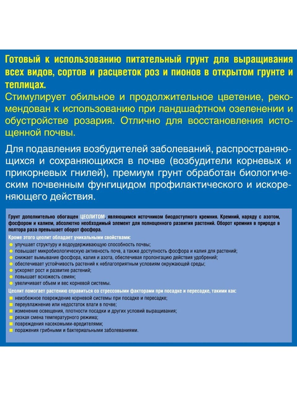 Использование этого грунта позволяет добиться яркого и продолжительного цветения, увеличить устойчивость растений к стрессам, болезням и неблагоприятным погодным условиям. Благодаря сбалансированной структуре и питательному составу, розы и пионы лучше укореняются, быстрее адаптируются и радуют насыщенным цветом и крепкими побегами. Грунт рекомендуется для всех, кто хочет создать красочную клумбу или ухоженный сад без лишних хлопот и затрат времени.