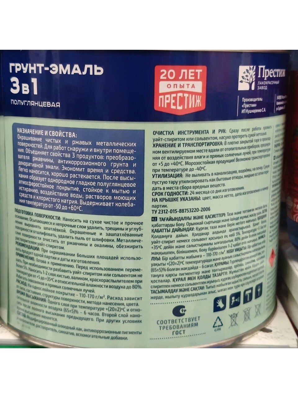 Вы можете приобрести «Грунт-эмаль Престиж, по ржавчине, алкидная, зеленая, 1.9 кг» и другие товары в нашем интернет-магазине в Таганроге по низким ценам и с бесплатным самовывозом.