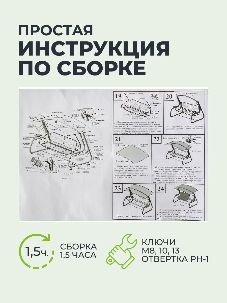 Эти качели созданы для тех, кто ценит качество и долговечность. Прочная металлическая конструкция выдерживает нагрузку до 320 кг, что делает их идеальными для семейного отдыха. Полиэстеровые подушки с синтепоновым наполнителем обеспечивают мягкость и комфорт, а их плотность гарантирует долгий срок службы.