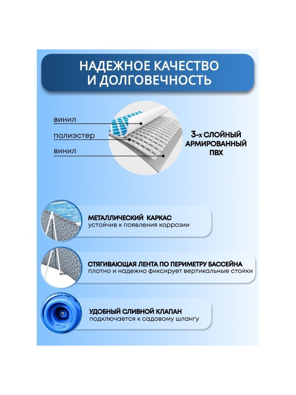- легко разбирается для хранения в межсезонье: конструкция позволяет быстро и без усилий подготовить бассейн к зимнему периоду, экономя место и время;