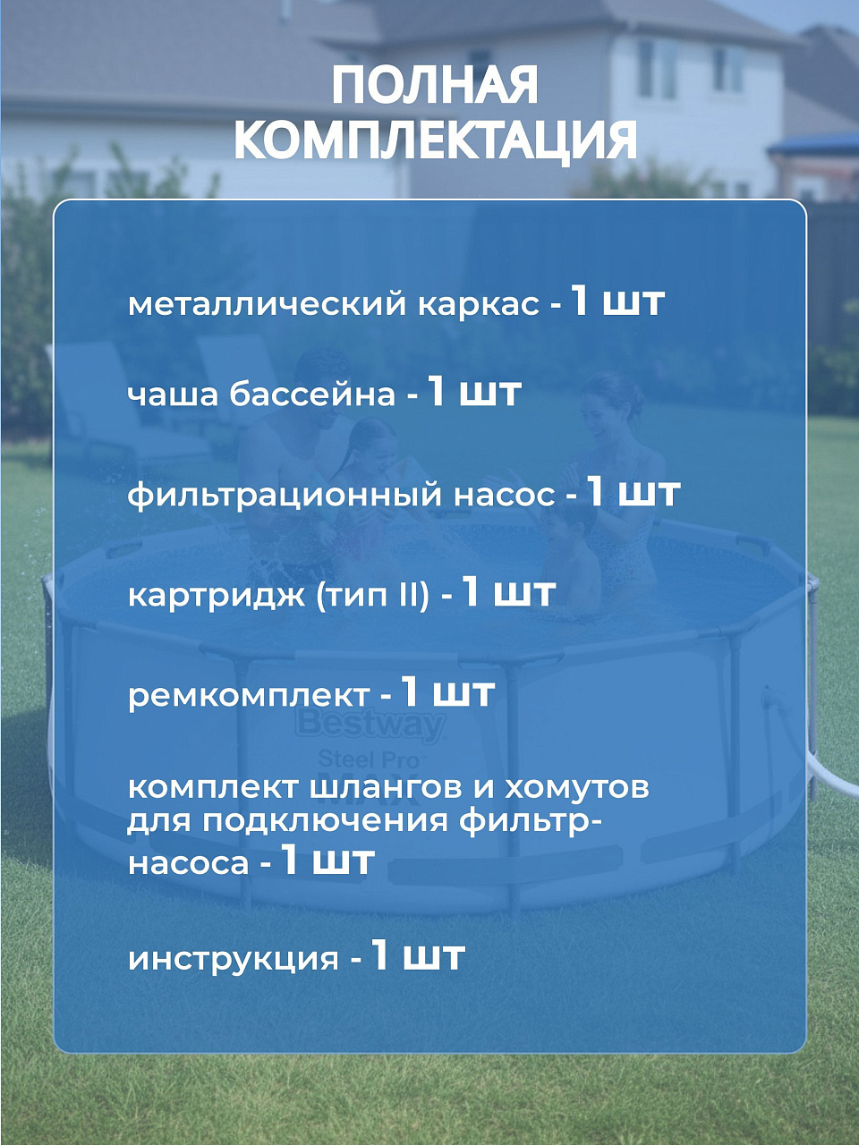 Наслаждайтесь летними днями с бассейном каркасным Bestway Steel Pro Max 366х100 см! Идеальный выбор для тех, кто ищет надежный и долговечный бассейн для дачи. Этот бассейн каркасный станет центральным элементом вашего двора, обеспечивая комфортное и безопасное купание для всей семьи.