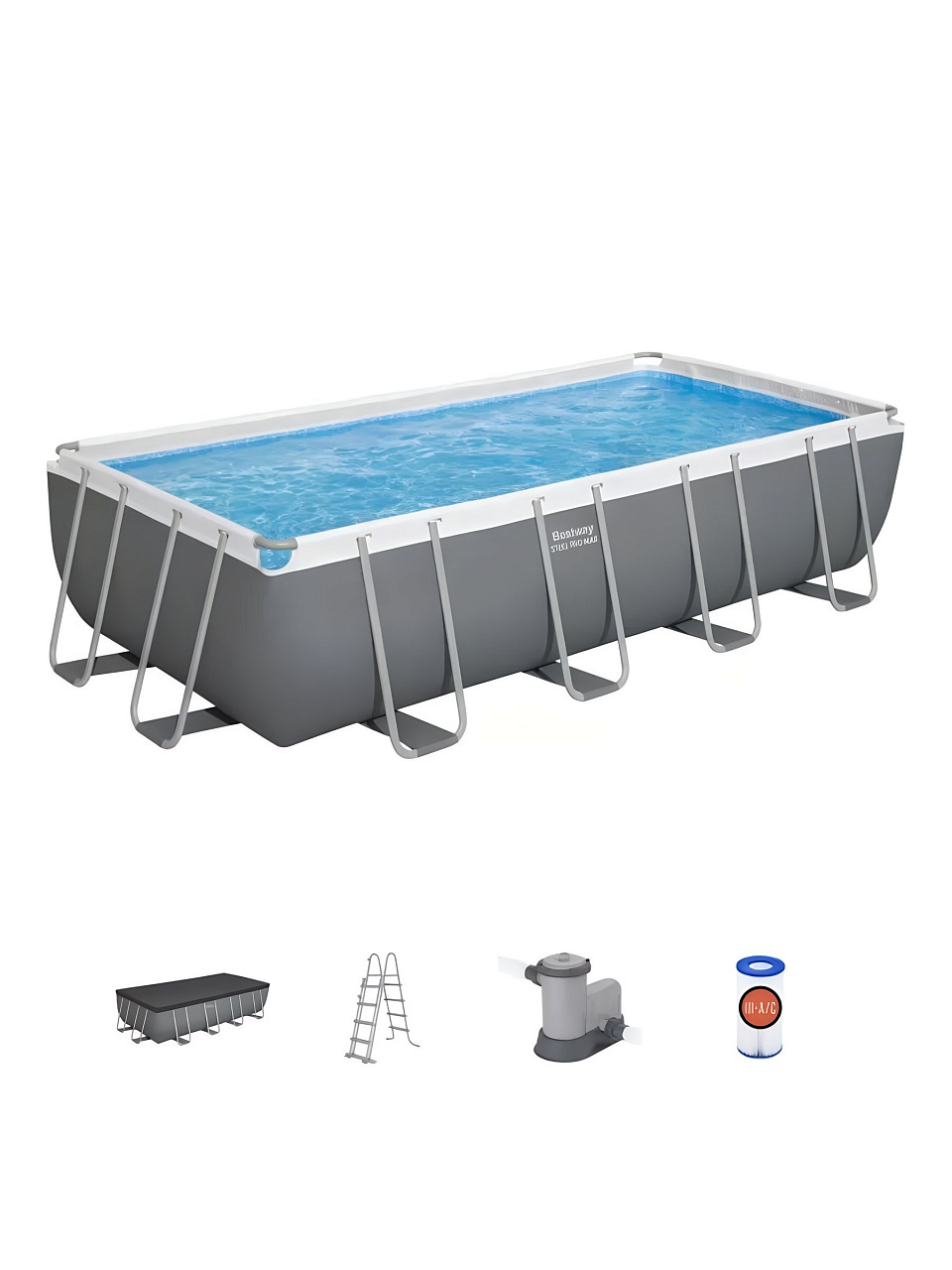 Вы можете приобрести «Бассейн каркасный Bestway, 549х274х122 см, Power Steel Rectangular, 56465, фильтр-насос, лестница, тент, 14812 л» и другие товары в нашем интернет-магазине в Казани по низким ценам и с бесплатным самовывозом.