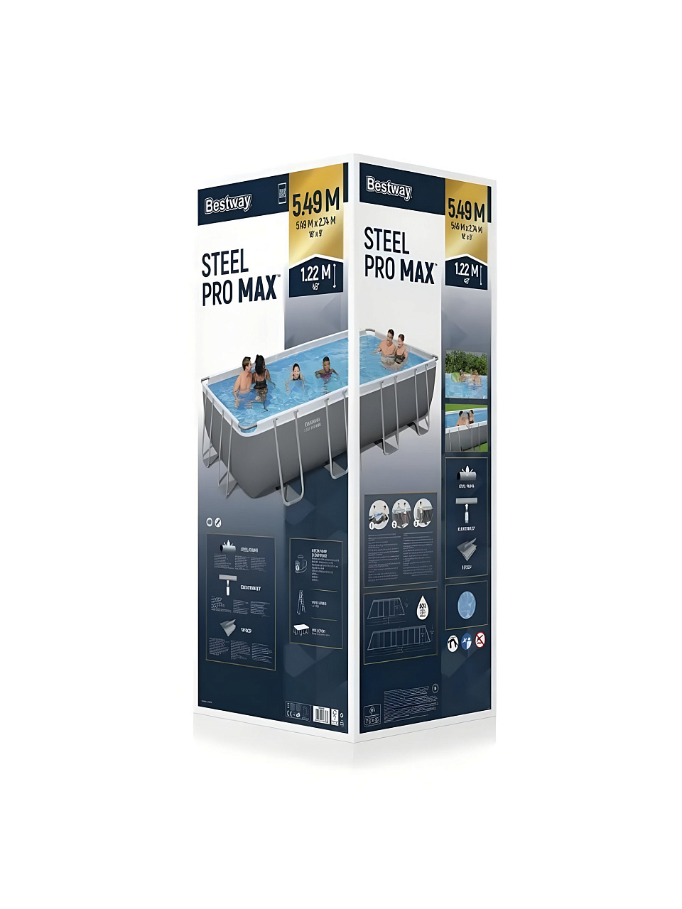 Бассейн Bestway Power Steel 549х274х122 см рассчитан на 6–8 человек, глубина 122 см безопасна для детей под присмотром взрослых.