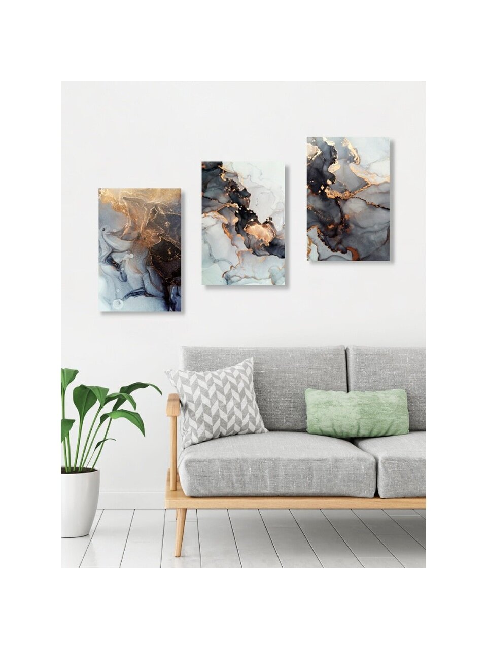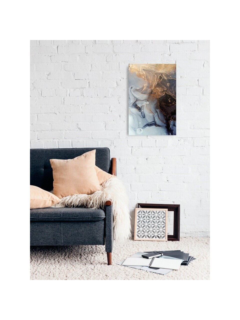 Картины поставляются с крючком для позиционирования на стене. На оборотной стороне картины находится металлическое крепление, во внутренней части гофроупаковки прикреплен дюбель-крючок. Картина крепится на крючок, который предварительно должен находиться в стене.