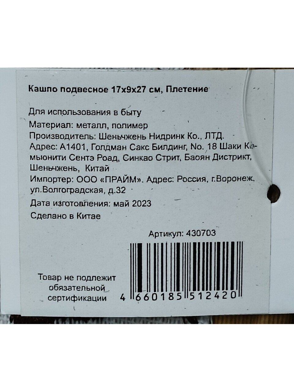 Вы можете приобрести «Кашпо подвесное 17х9х27 см, Плетение, Y4-6522» и другие товары в нашем интернет-магазине в Тамбове по низким ценам и с бесплатным самовывозом.