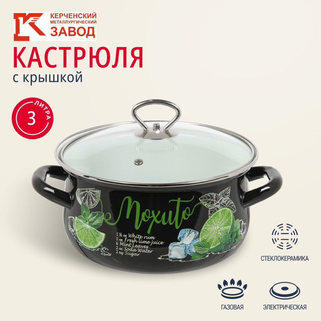 Вы можете приобрести «Кастрюля эмалированная сталь, 3 л, крышка стекло, с декором, сферический, Керченский металлургический завод, Мохито, 61915-123/4» и другие товары в нашем интернет-магазине в Астрахани по низким ценам и с бесплатным самовывозом.