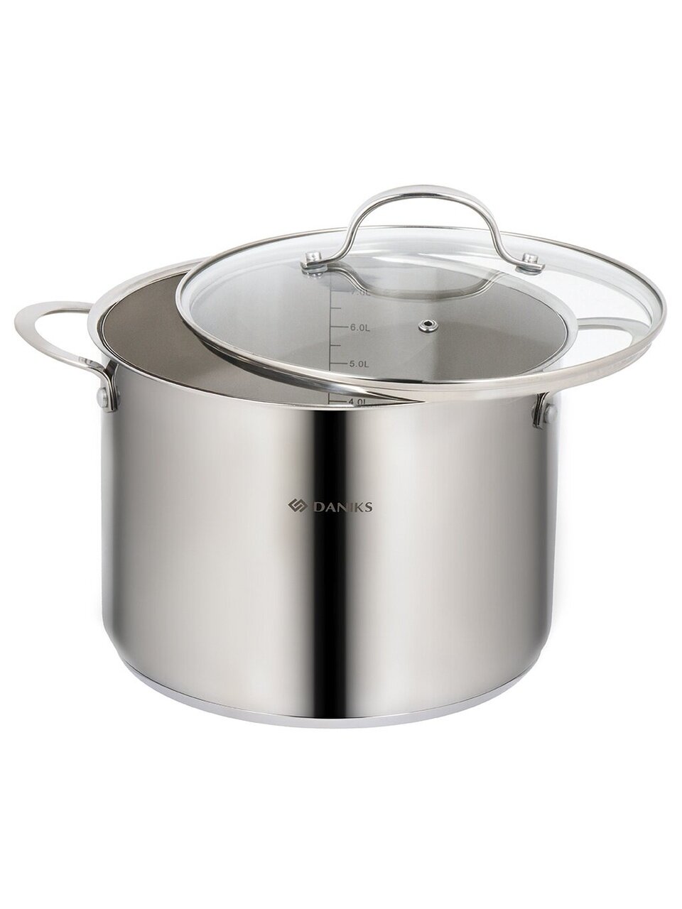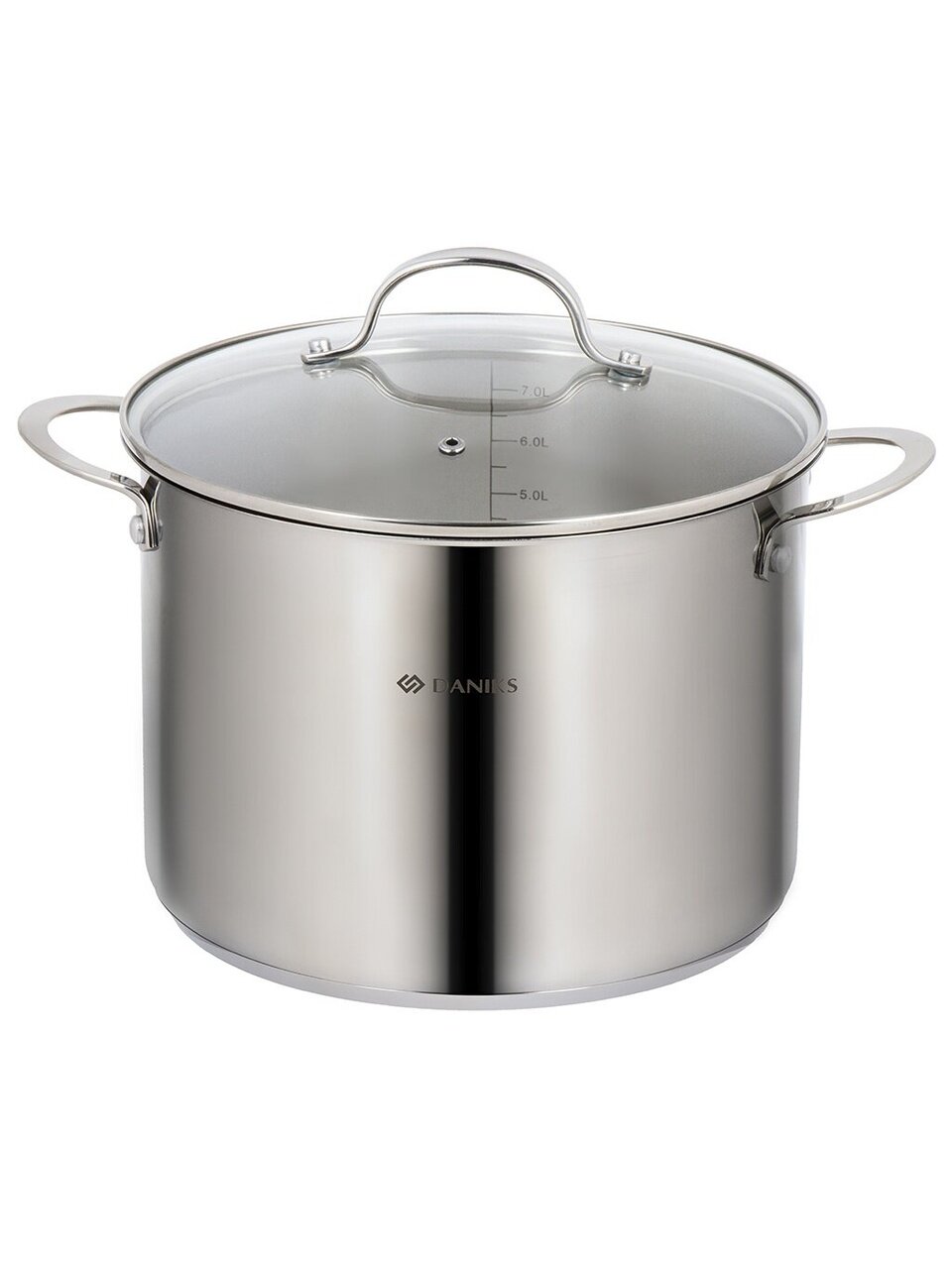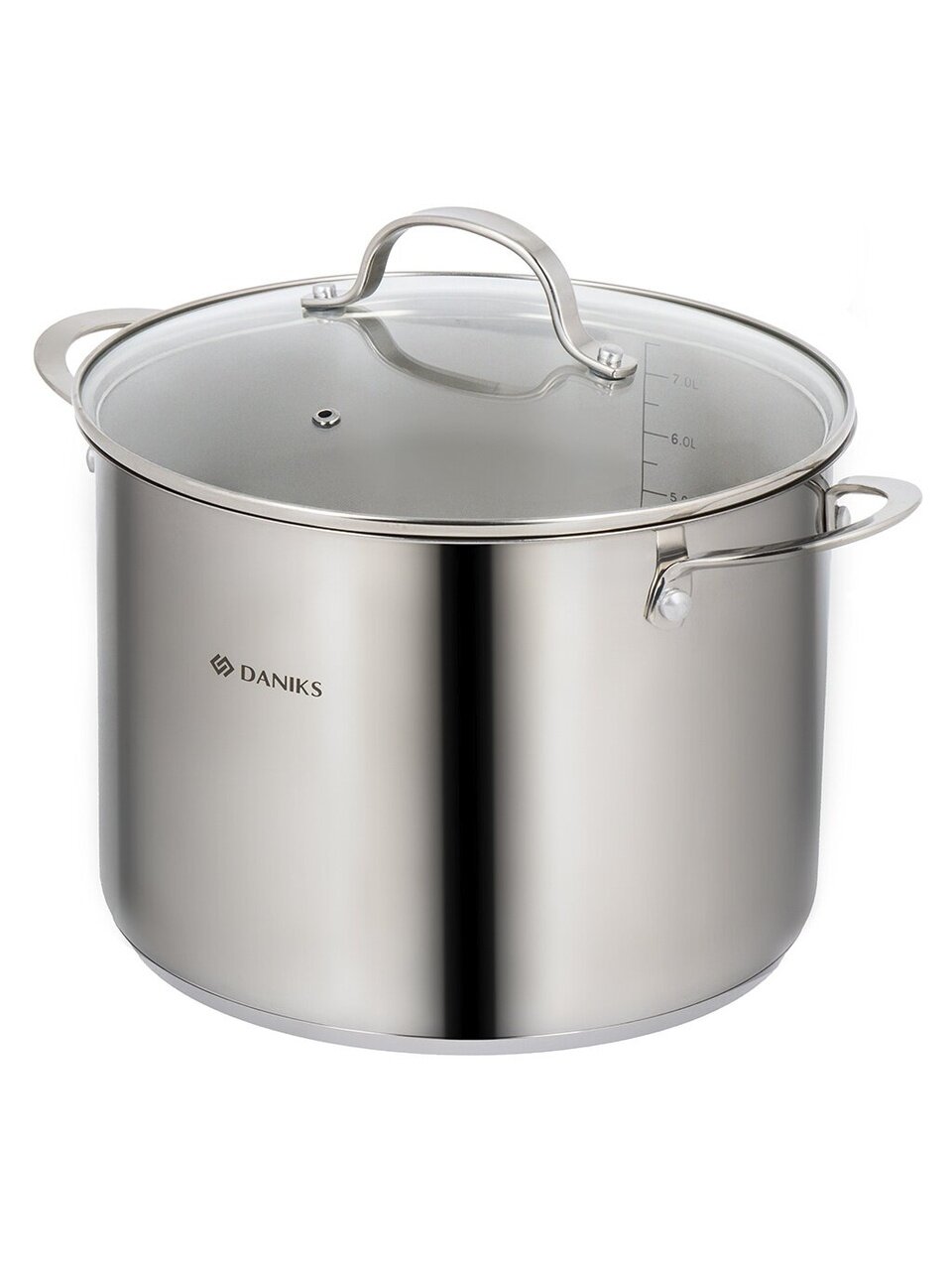 Кастрюля Daniks Профессионал 8 л из нержавеющей стали с капсульным дном и стеклянной крышкой — оптимальный выбор для индукционных плит, дома и дачи.