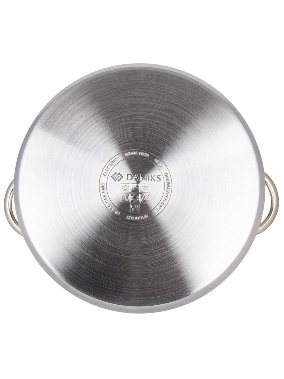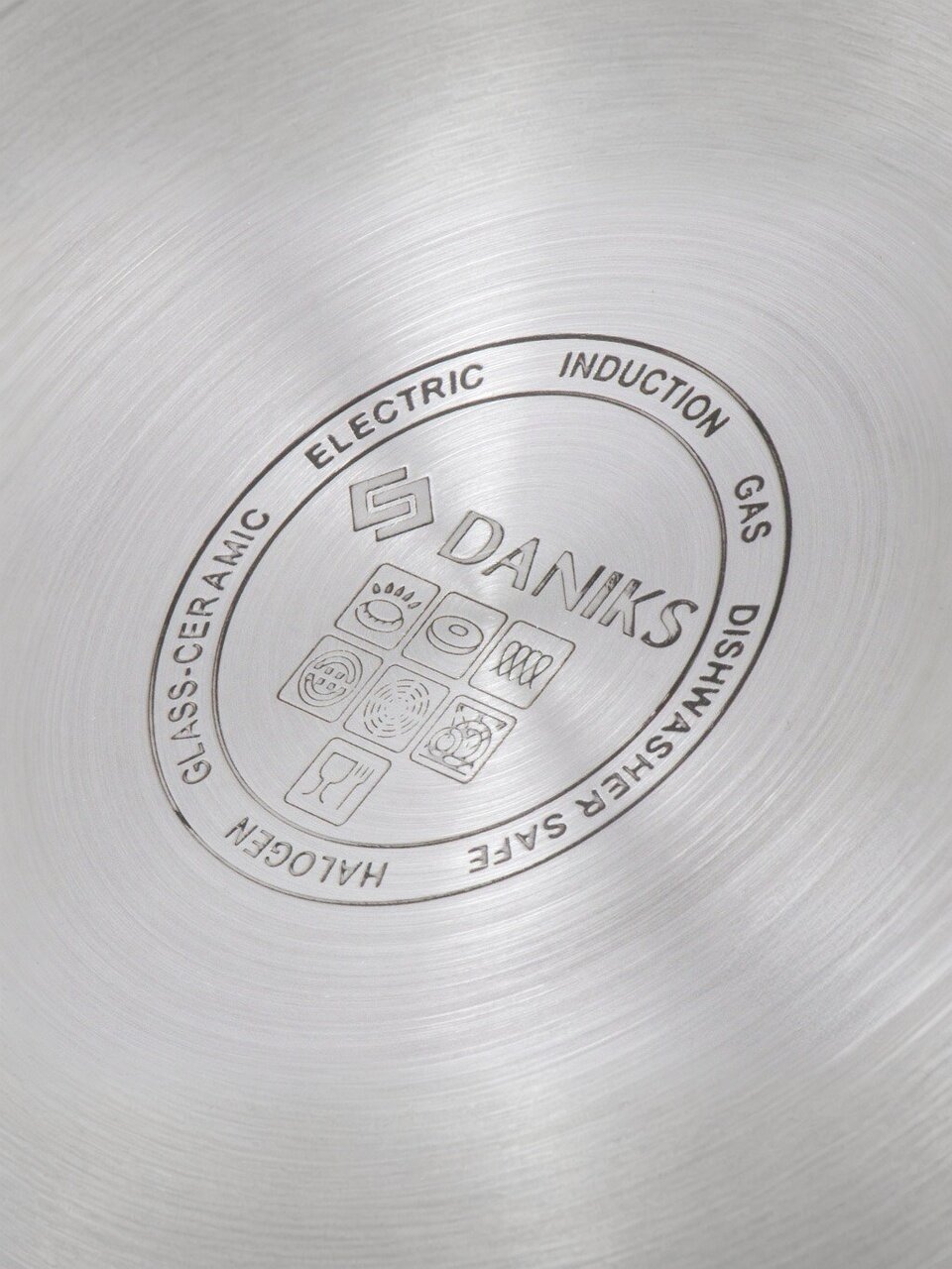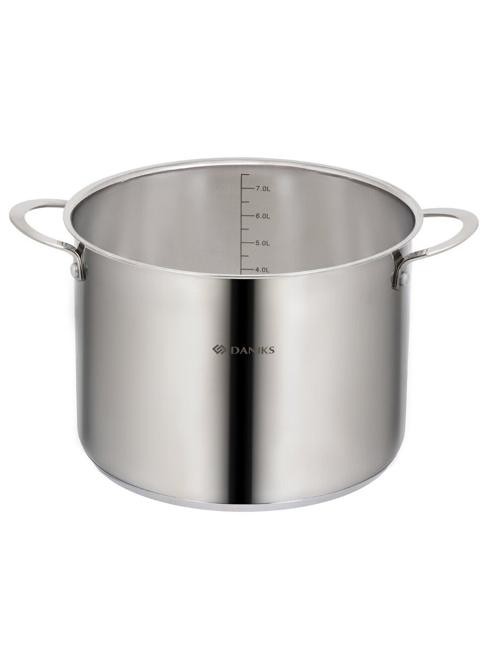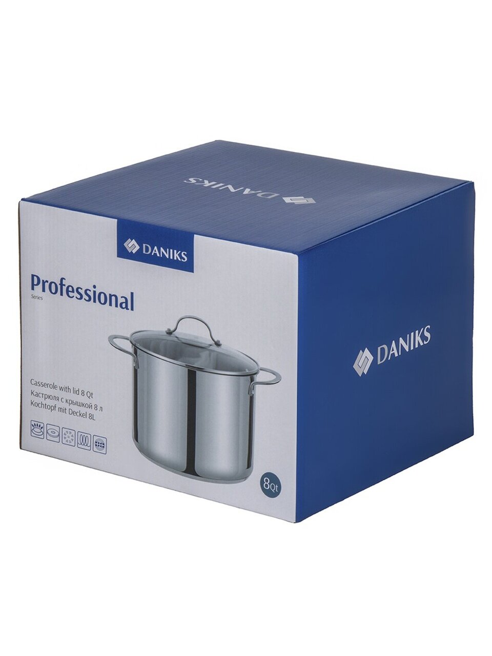 Кастрюля Daniks Профессионал 8 л из нержавеющей стали с капсульным дном и стеклянной крышкой — оптимальный выбор для индукционных плит, дома и дачи.