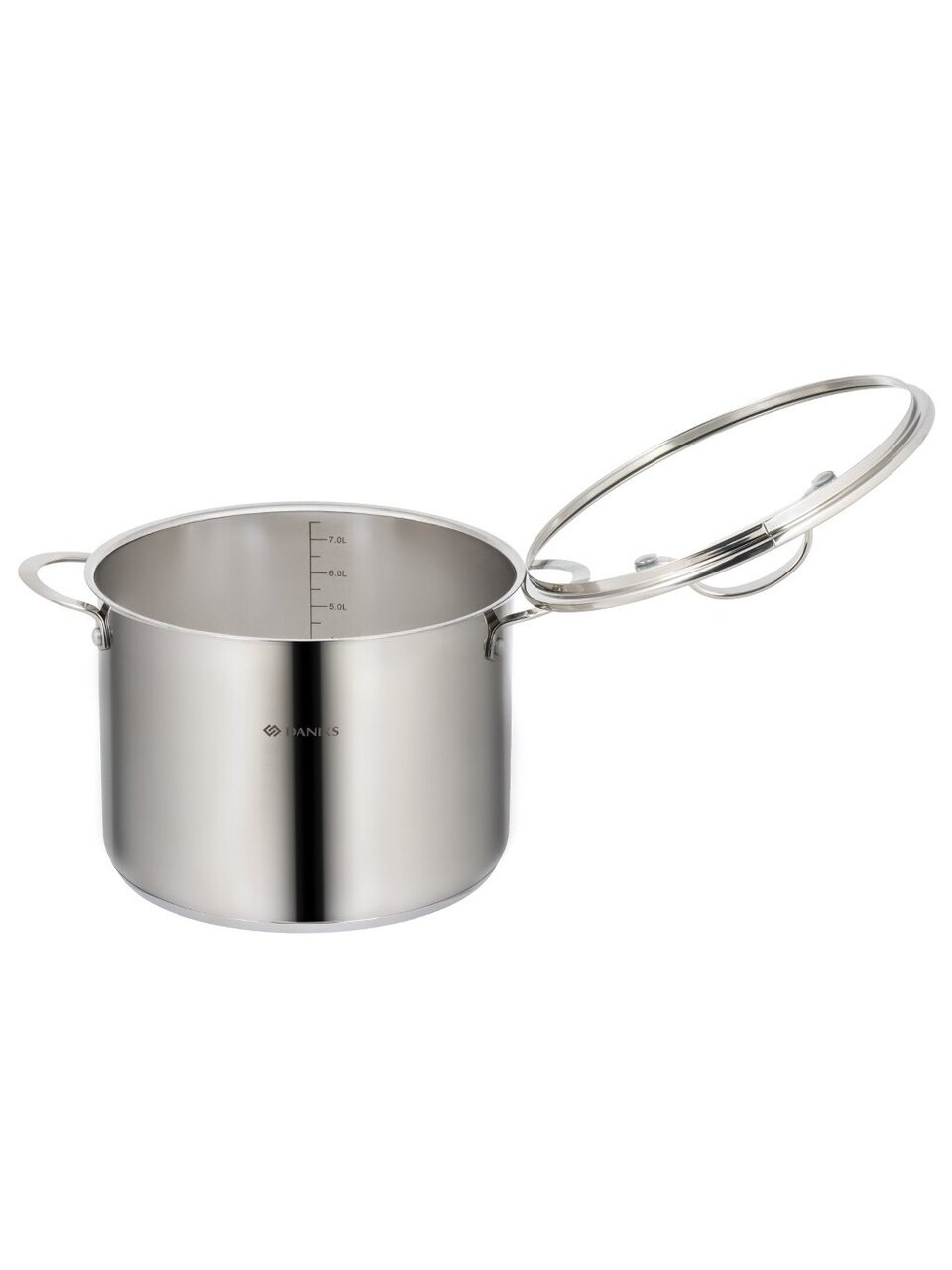 В отличие от эмалированных и алюминиевых аналогов, кастрюля Daniks не подвержена коррозии, не требует особого ухода, не впитывает запахи. Стеклянная крышка с выпускным клапаном позволяет контролировать процесс готовки, а мерная шкала внутри облегчает дозировку ингредиентов. Если вы ищете, какую кастрюлю выбрать для семьи или дачи — обратите внимание на универсальный объём и прочность этой модели.