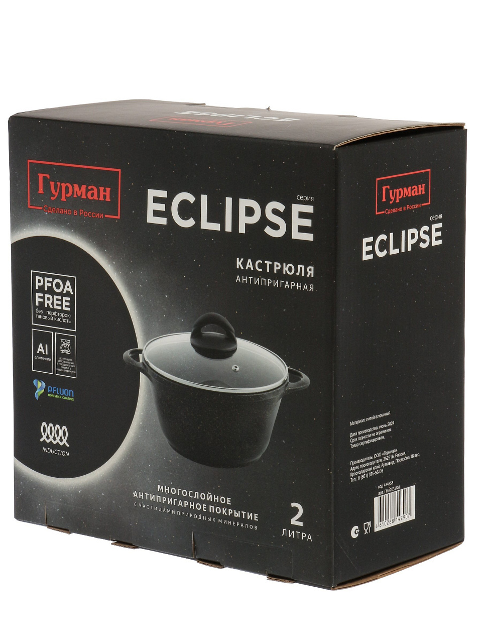 Кастрюля 2 л Гурман Eclipse с антипригарным гранитным покрытием: готовьте быстро, легко и без пригорания на любой плите. Лучший выбор для дома и дачи.