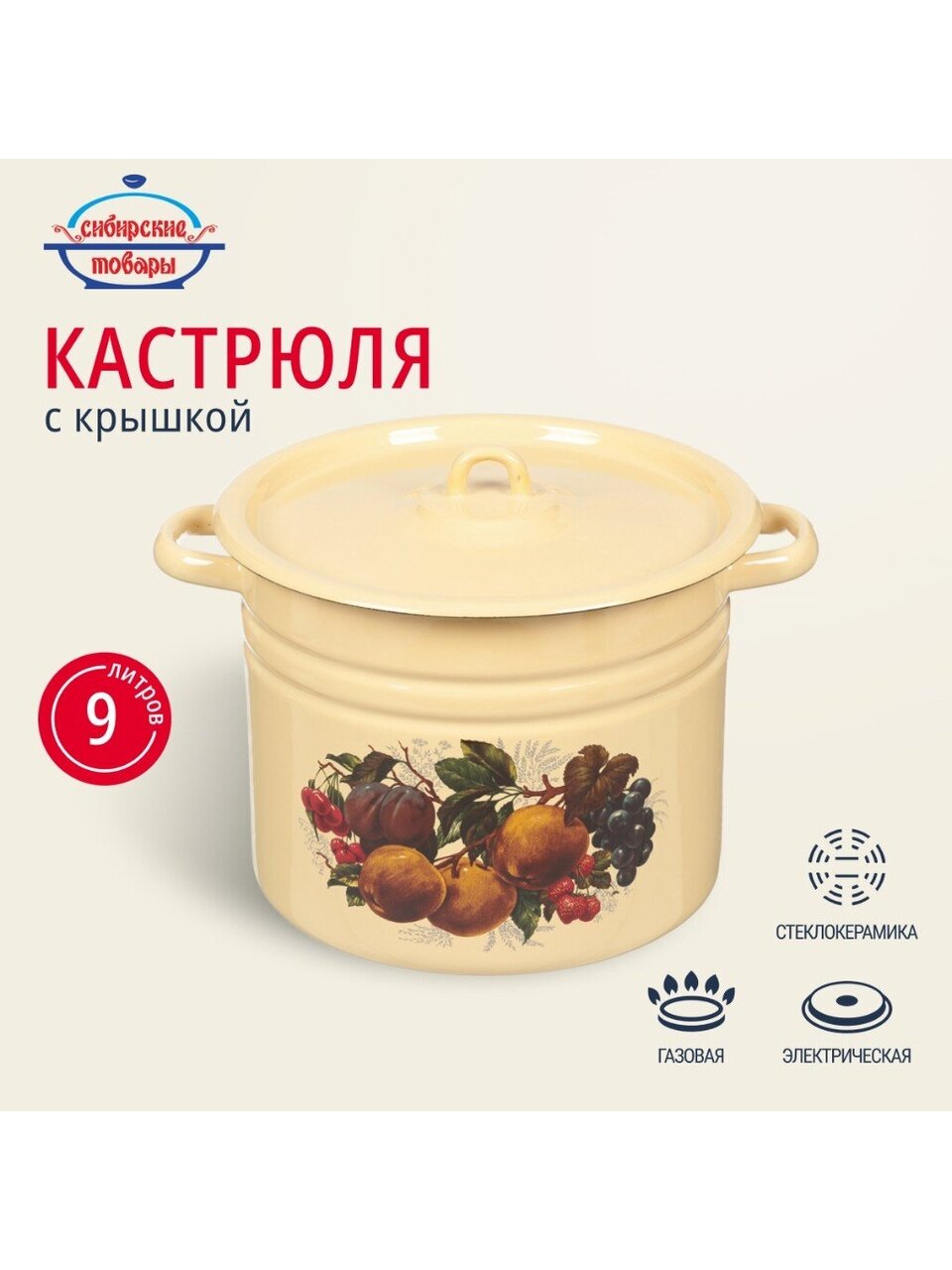 Эмалированная кастрюля из стали 9 л с крышкой: оптимальный выбор для большой семьи, дачи и заготовок. Лёгкая, вместительная, устойчива к коррозии, не впитывает запахи.