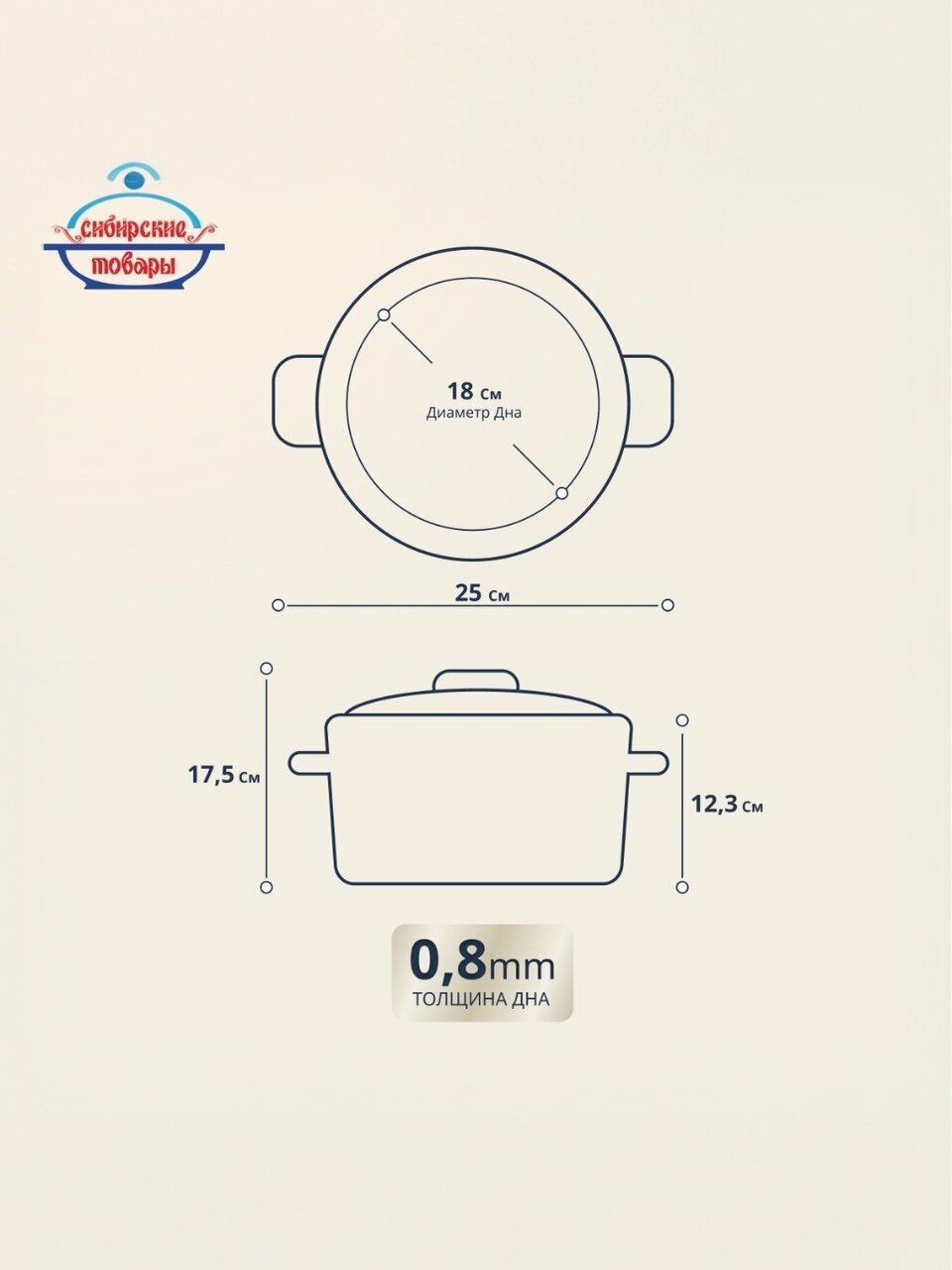 Кастрюля эмалированная сталь 3 л для индукции — долговечная и универсальная посуда «Сибирские товары» для кухни, дачи и подарка. Легко мыть, не впитывает запахи.