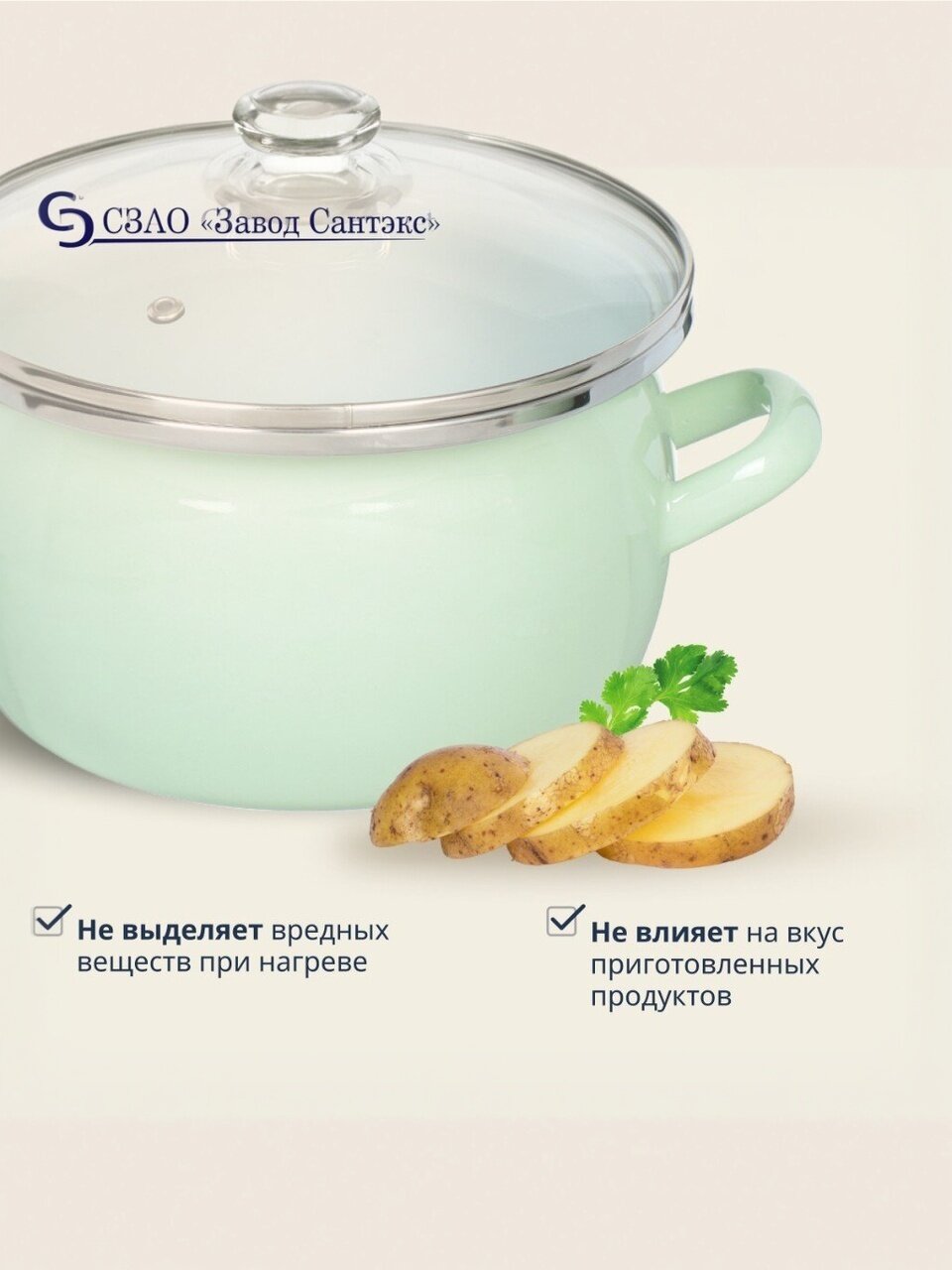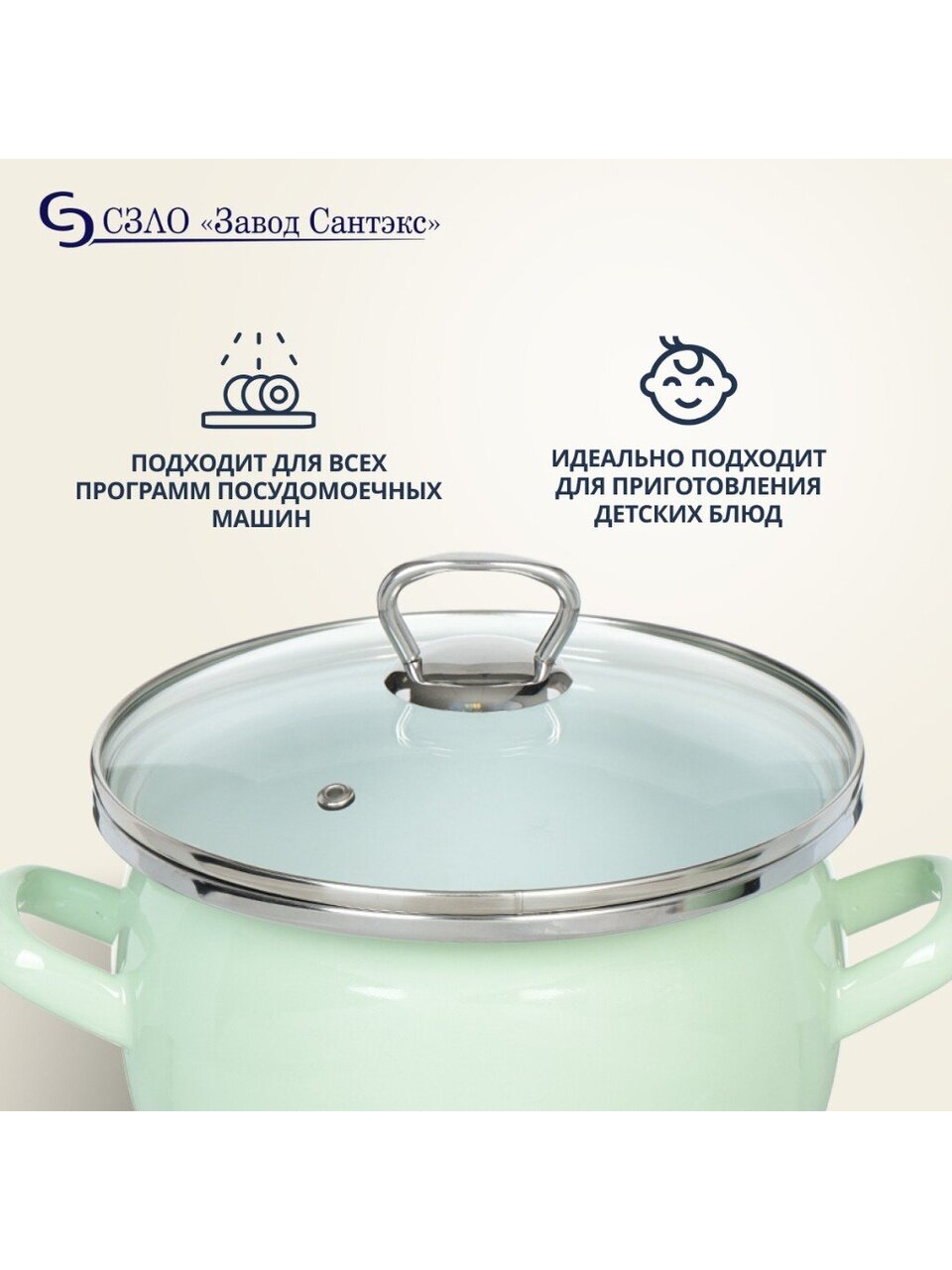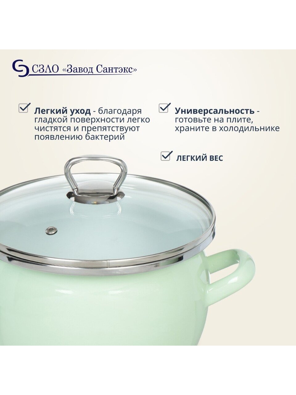 Кастрюля эмалированная Сантэкс 3 л с крышкой из стекла: идеальный выбор для индукционных плит, стильный мятный цвет, гарантия 24 месяца.