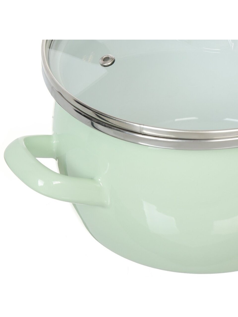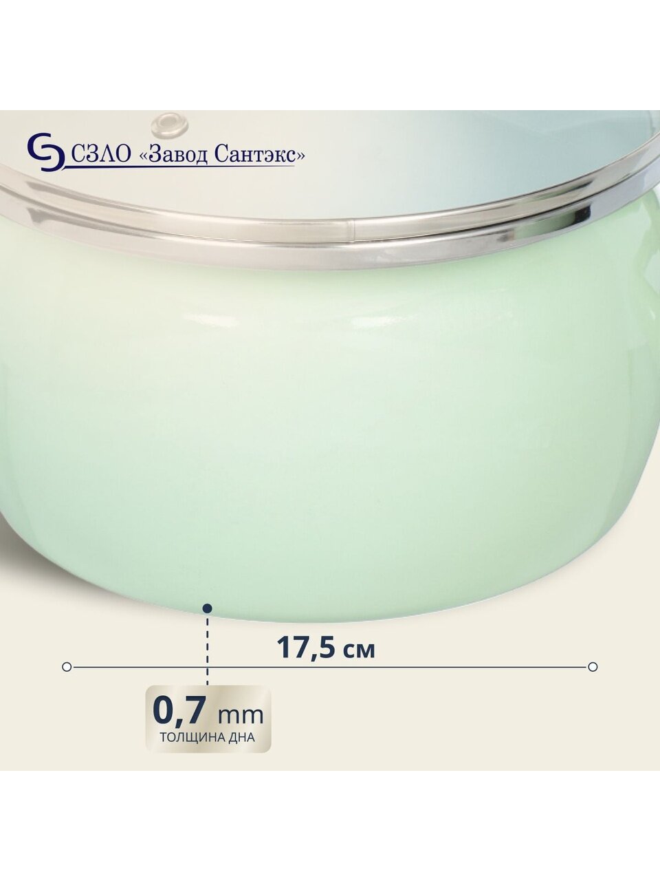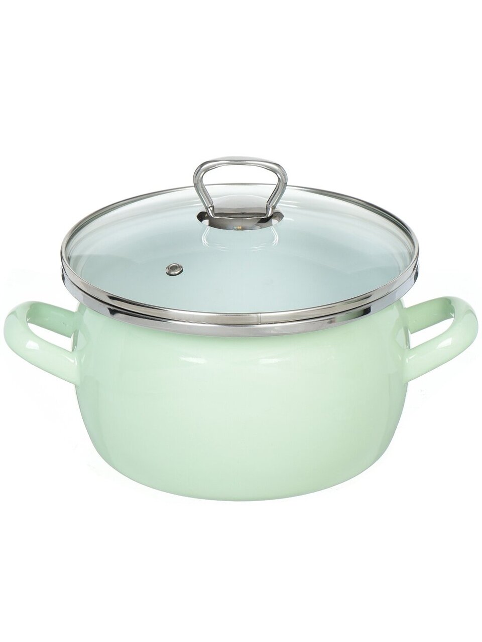 Кастрюля эмалированная Сантэкс 3 л с крышкой из стекла: идеальный выбор для индукционных плит, стильный мятный цвет, гарантия 24 месяца.