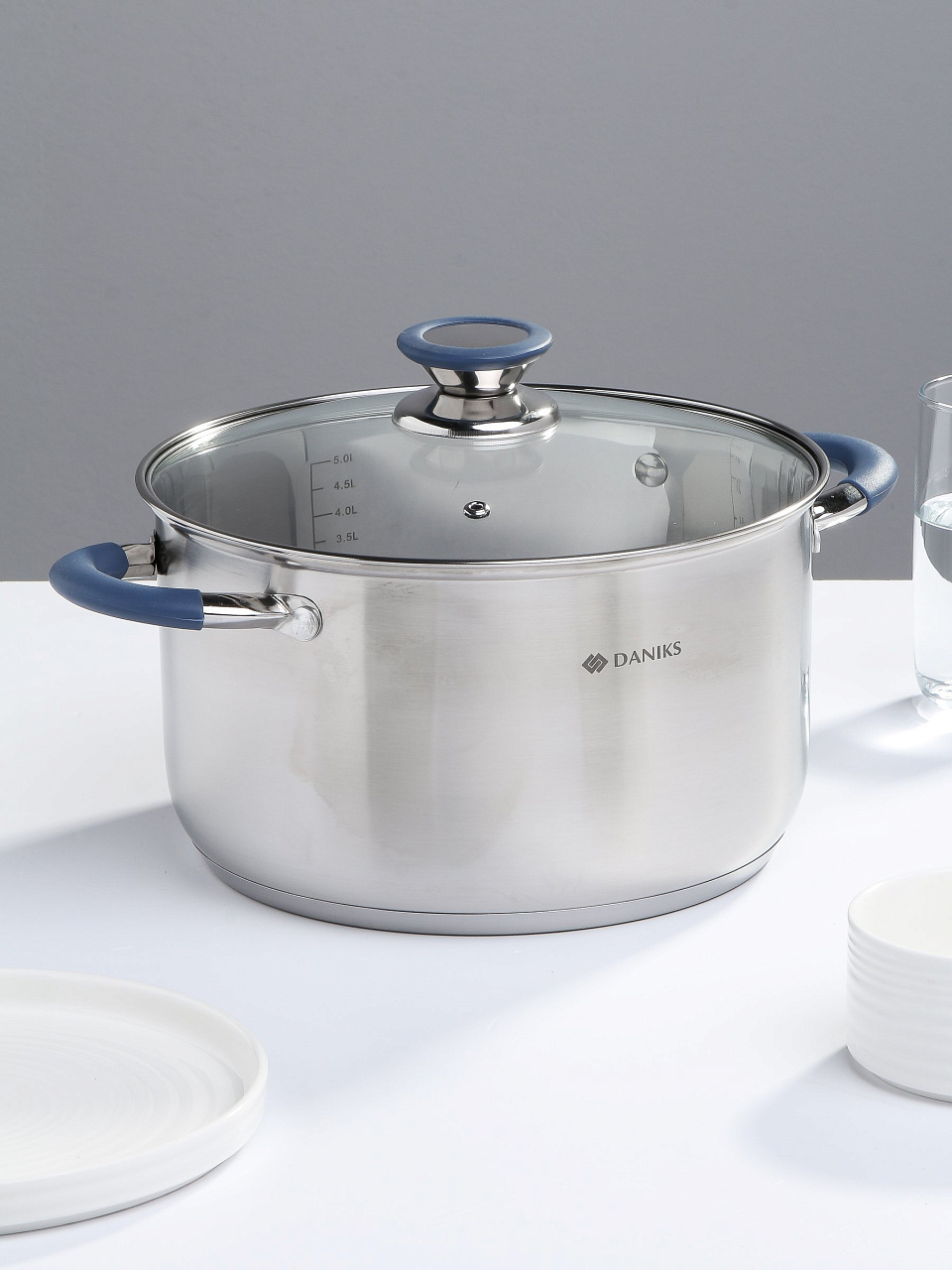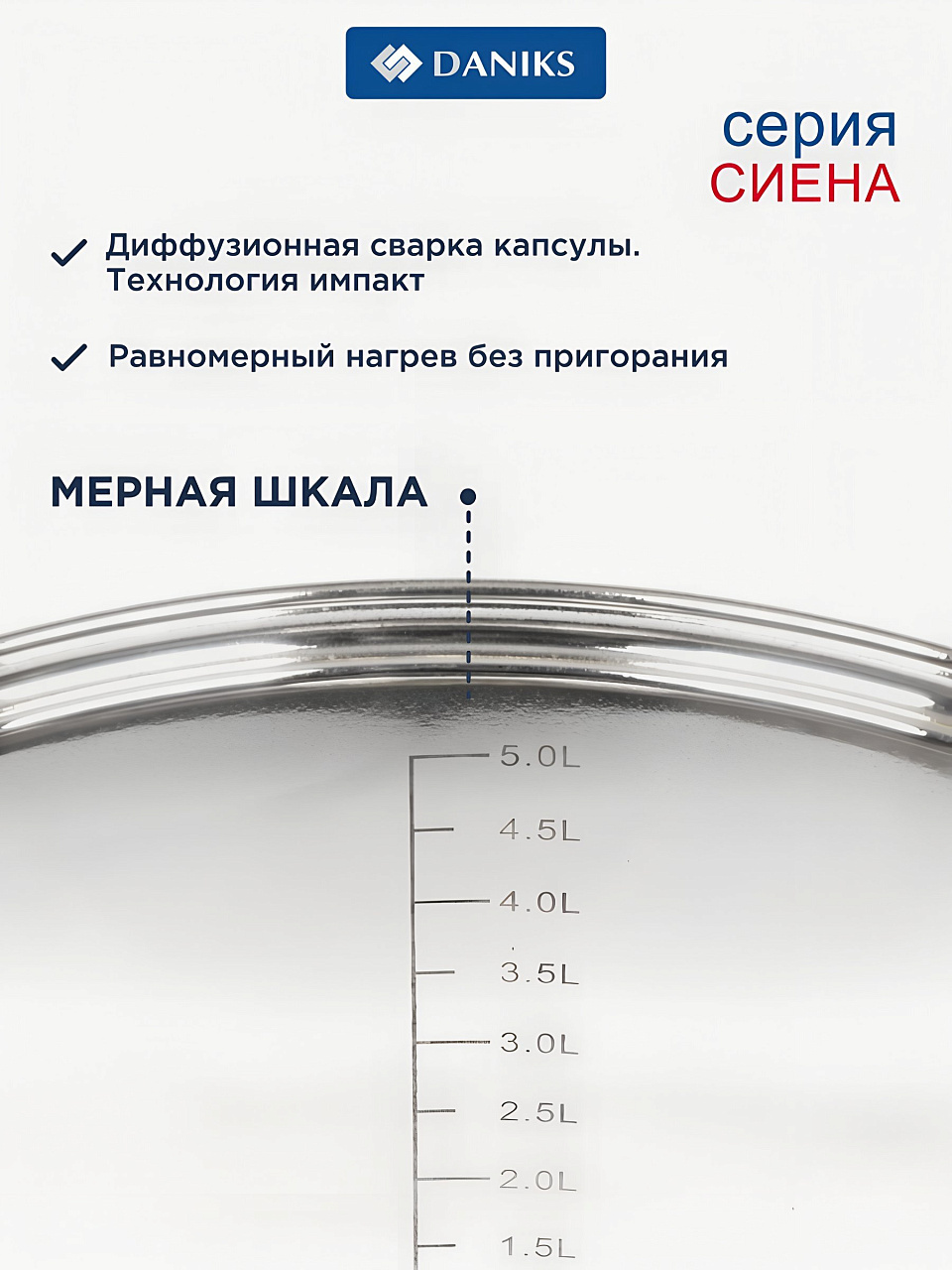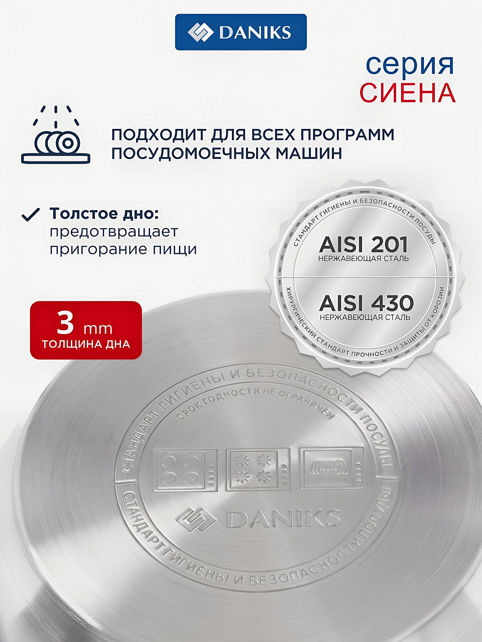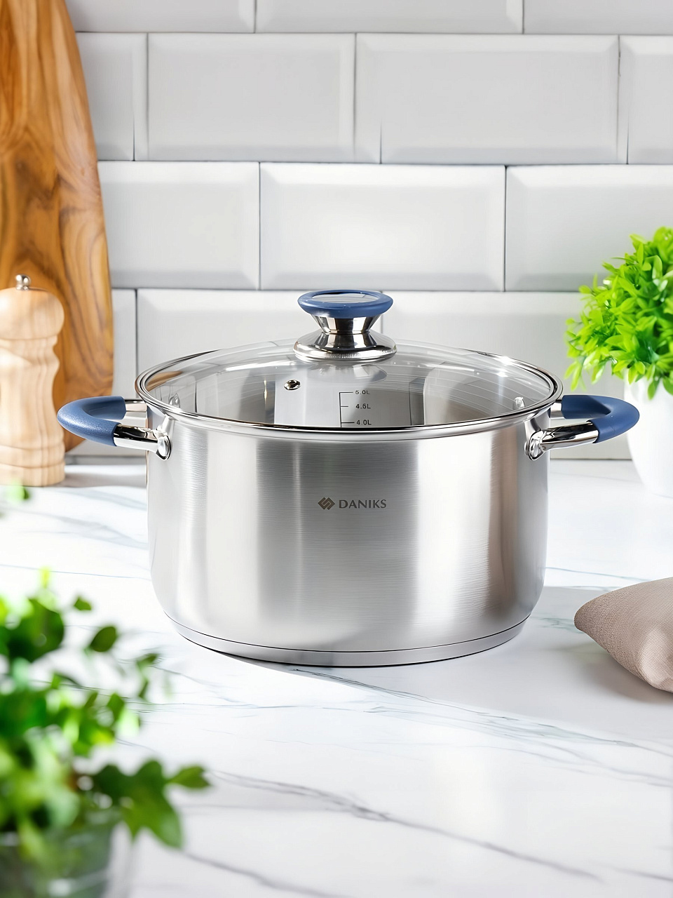 Кастрюля Daniks Сиена 6.5 л из нержавеющей стали: оптимальный выбор для индукционных плит — удобно готовить, легко мыть, подходит для больших семей.