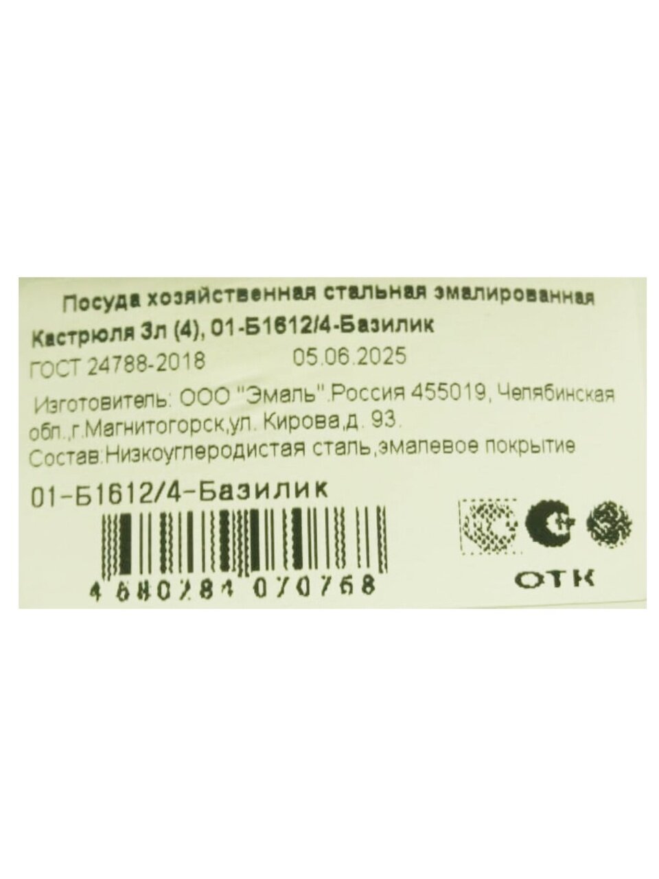 Вы можете приобрести «Кастрюля эмалированная сталь, 3 л, крышка сталь, цилиндр, Базилик, 01-Б1612/4М_а, индукция» и другие товары в нашем интернет-магазине в Нижнем Новгороде по низким ценам и с бесплатным самовывозом.
