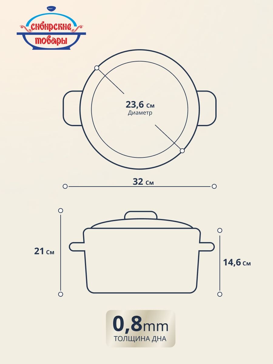 Эмалированная сталь безопасна для здоровья, не впитывает запахи, легко моется в посудомоечной машине. Объём 5.5 л позволяет готовить большие порции на всю семью или для заготовок на зиму.