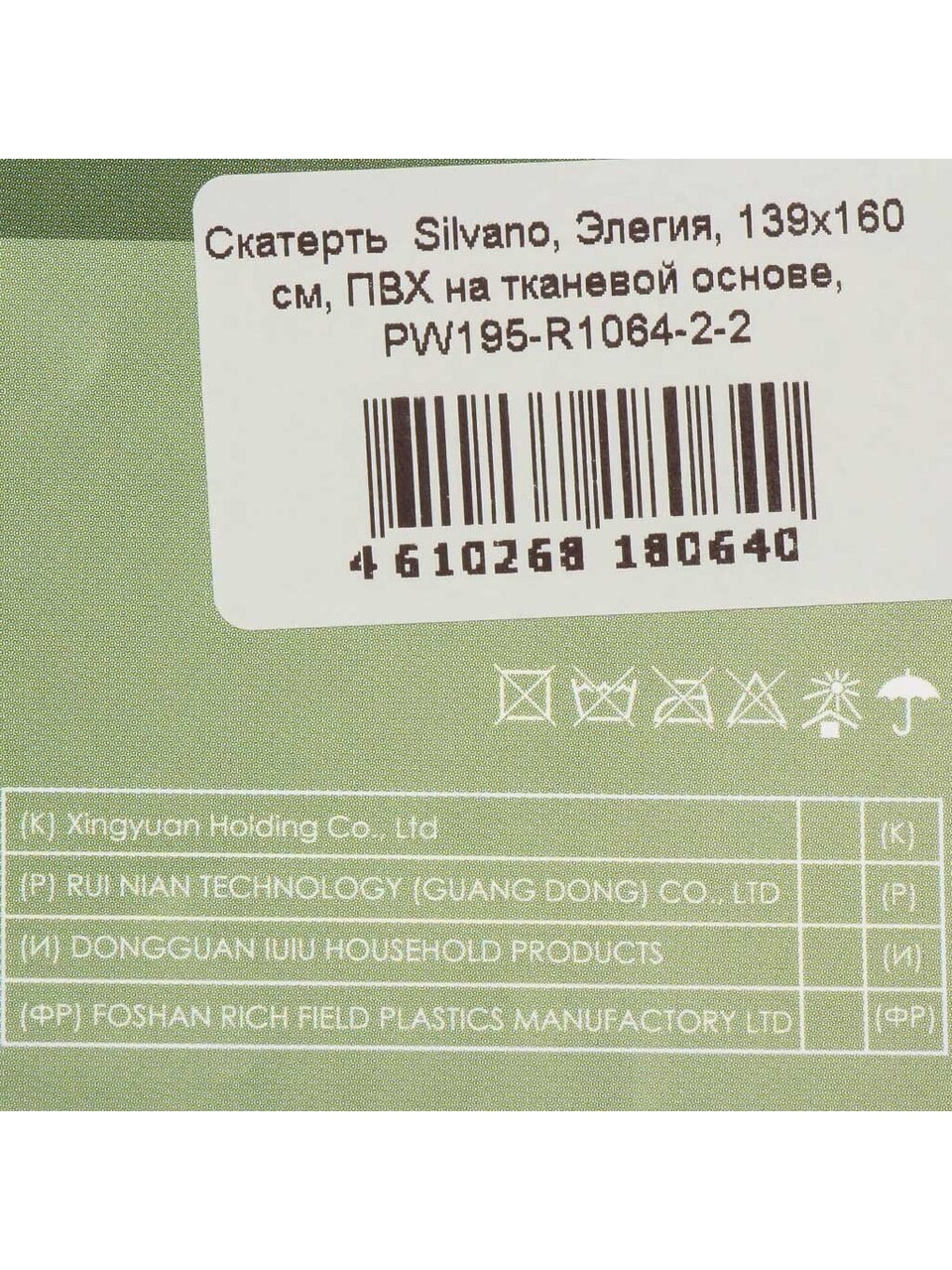 Вы можете приобрести «Скатерть Silvano, Элегия, 1.39х1.6 м, ПВХ на тканевой основе, PW195-R1064-2-2» и другие товары в нашем интернет-магазине в Смоленске по низким ценам и с бесплатным самовывозом.