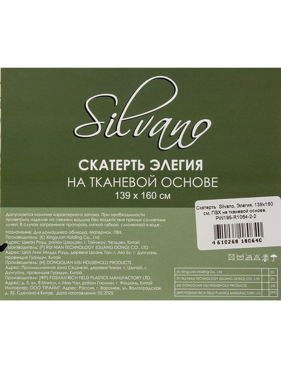 Универсальный размер 139х160 см подходит для большинства стандартных столов, делая скатерть отличным выбором как для кухни, так и для гостиной. Продукция бренда Silvano известна своим качеством и продуманным дизайном, что гарантирует долгий срок службы и эстетичное внешнее оформление.