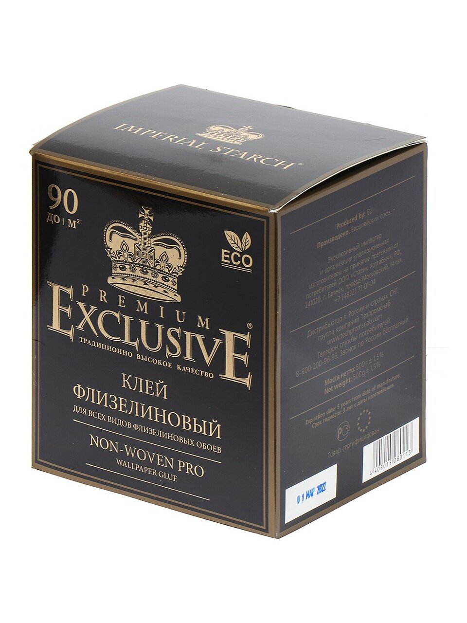 Клей для обоев Exclusive применяется для флизелиновых обоев. Сухая смесь разводится на 5 литров воды и рассчитана на площадь 90 кв.м.